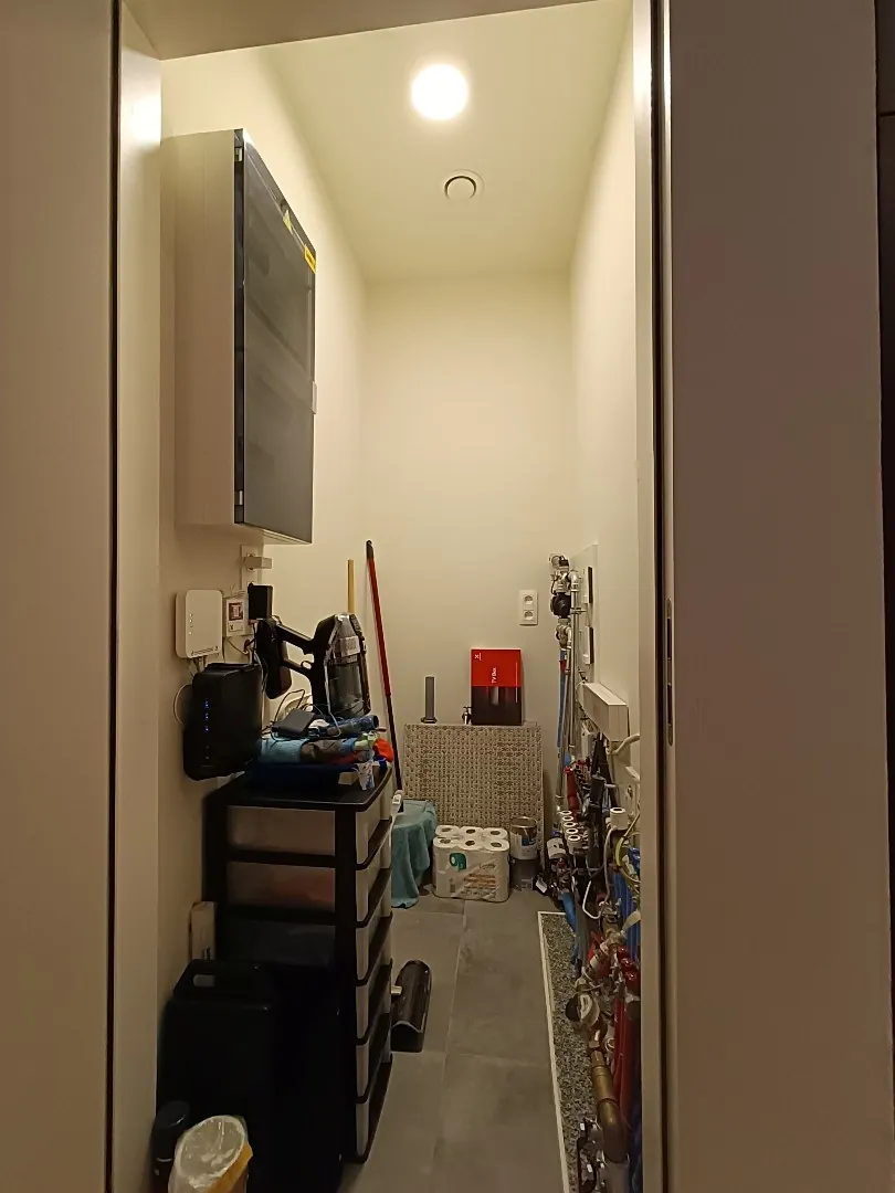 - Praktische berging met aansluiting voor wasmachine en droogkast,