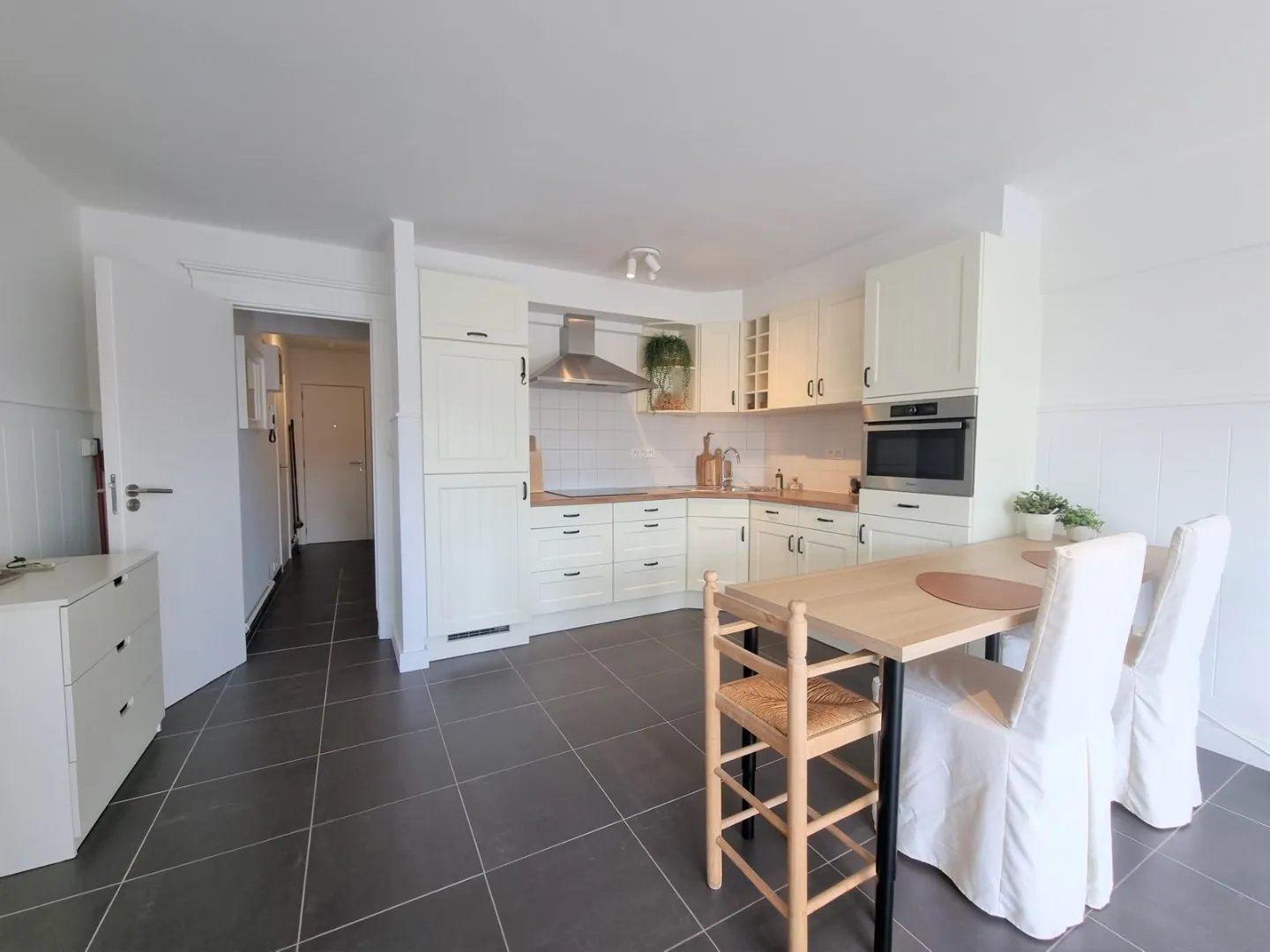Zonnig, vernieuwd appartement nabij het strand, gelegen aan de achterzijde van de zeedijk van Heist vlakbij het openbaar vervoer en alle voorzieningen.