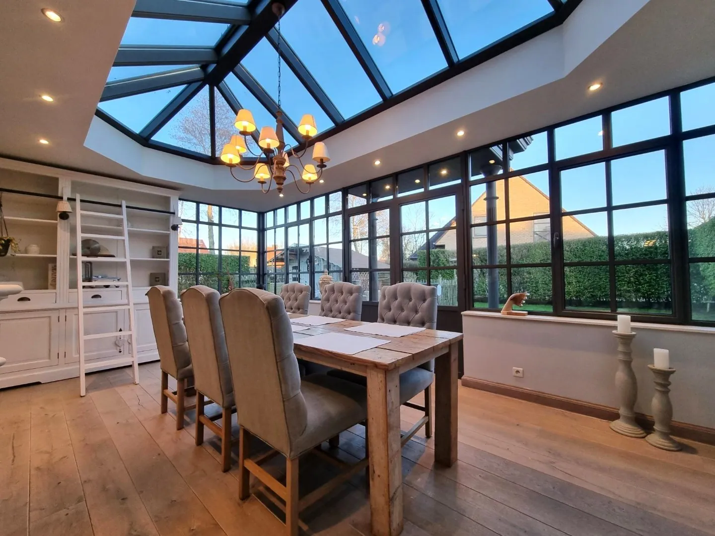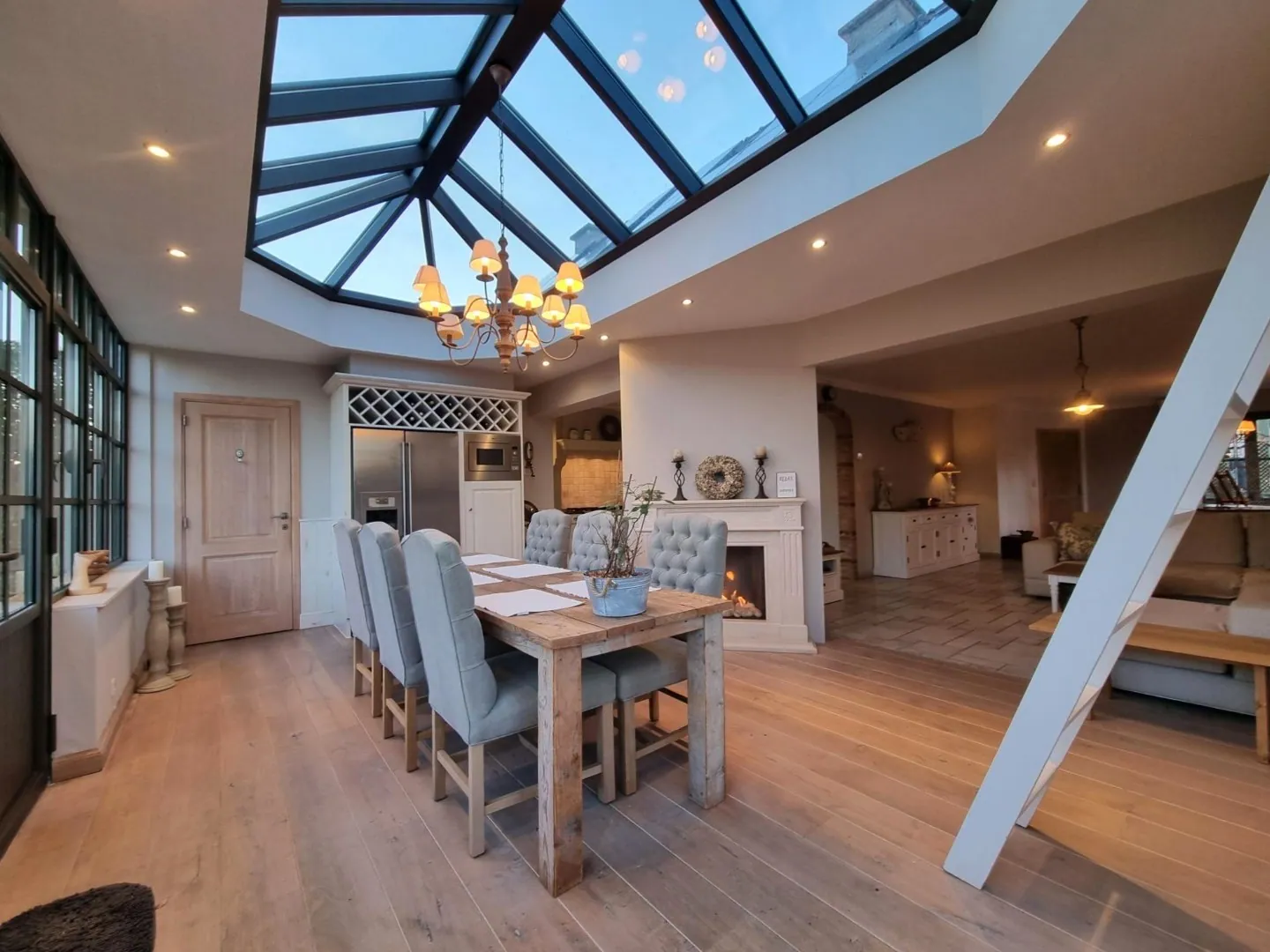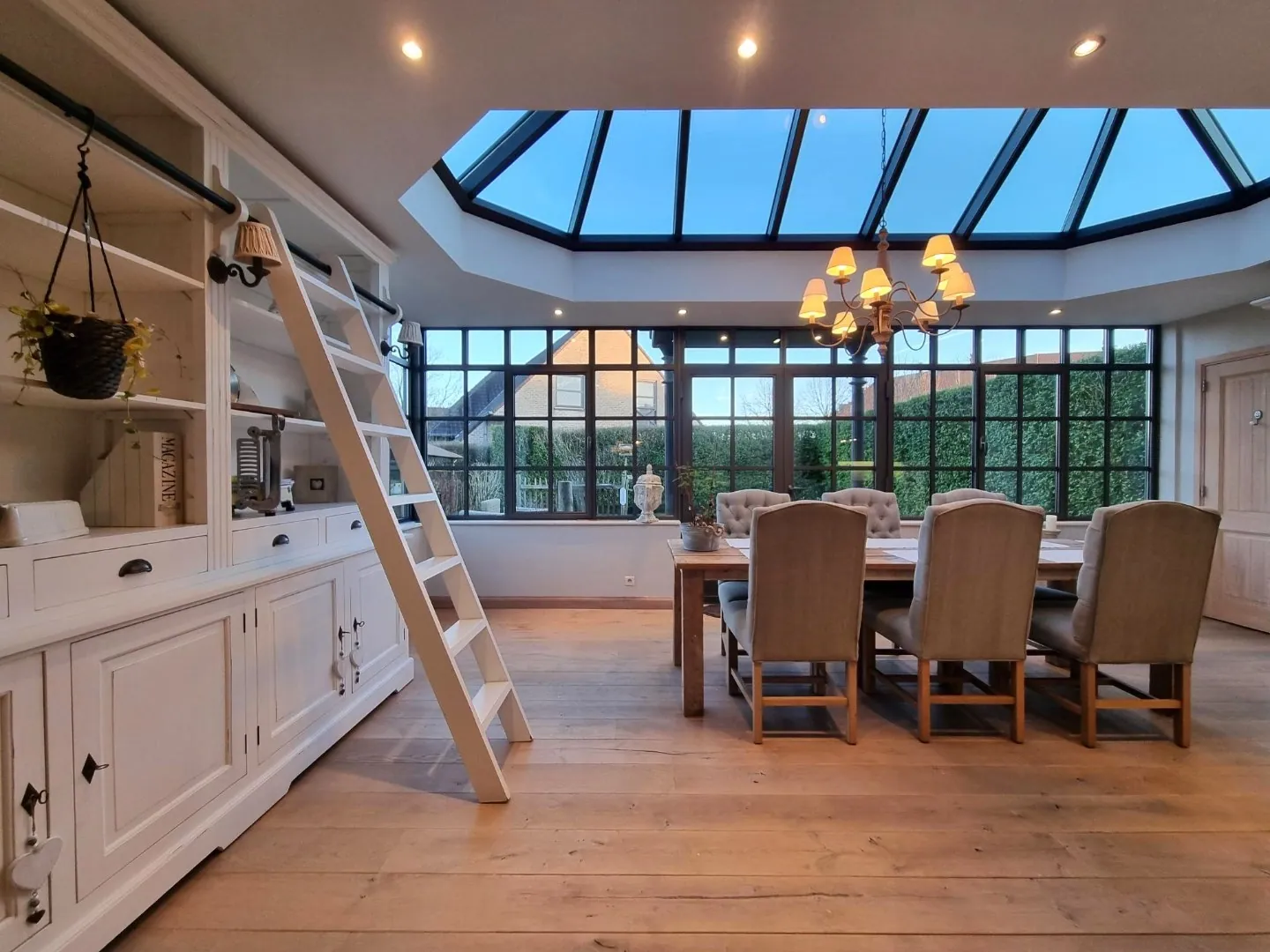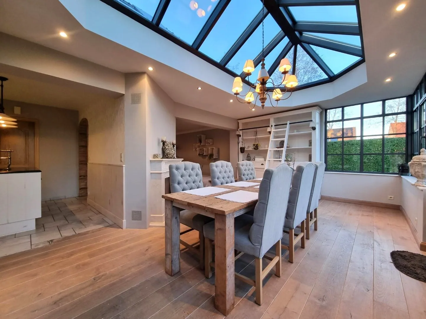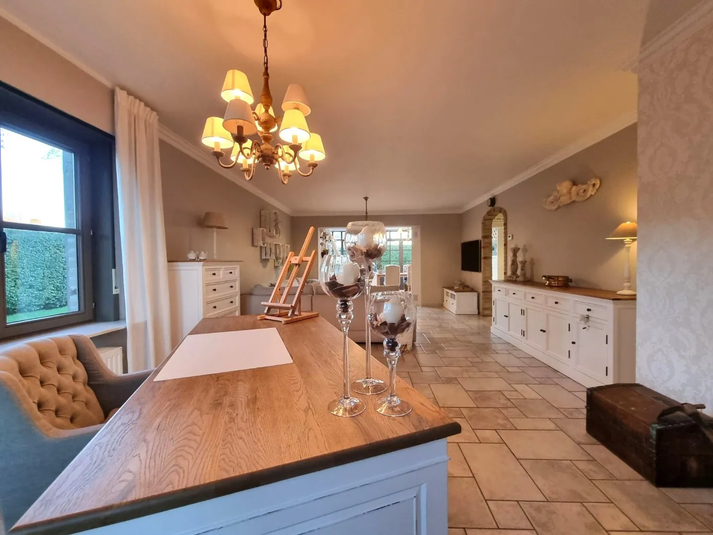 - Enorm grote leefruimte met bureauhoek, zithoek en eetkamer,