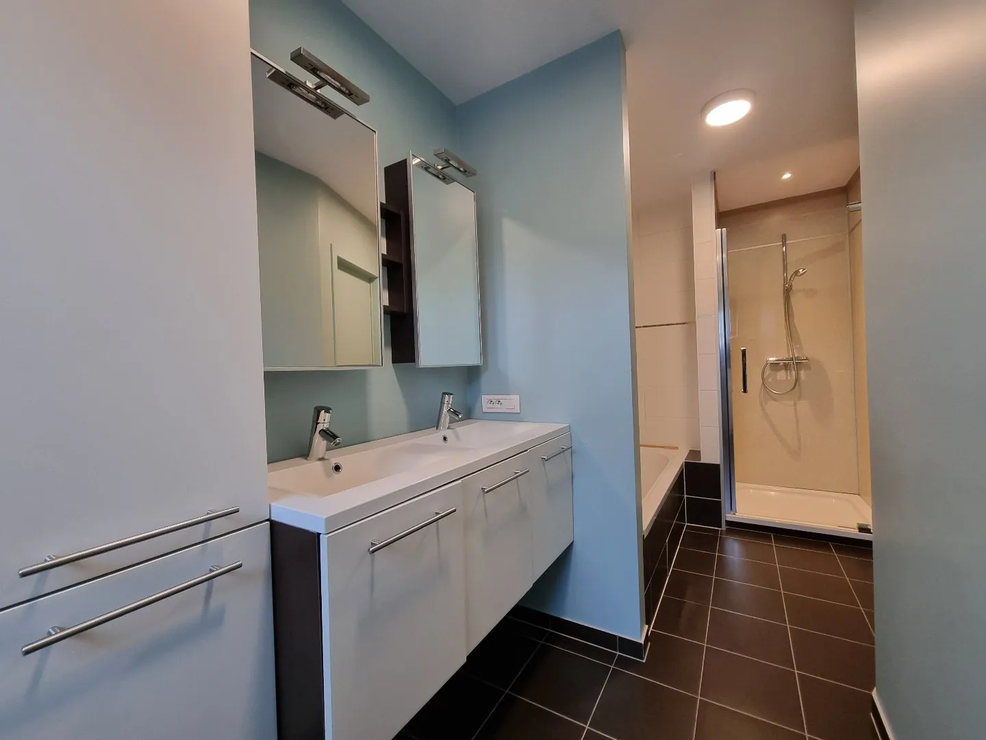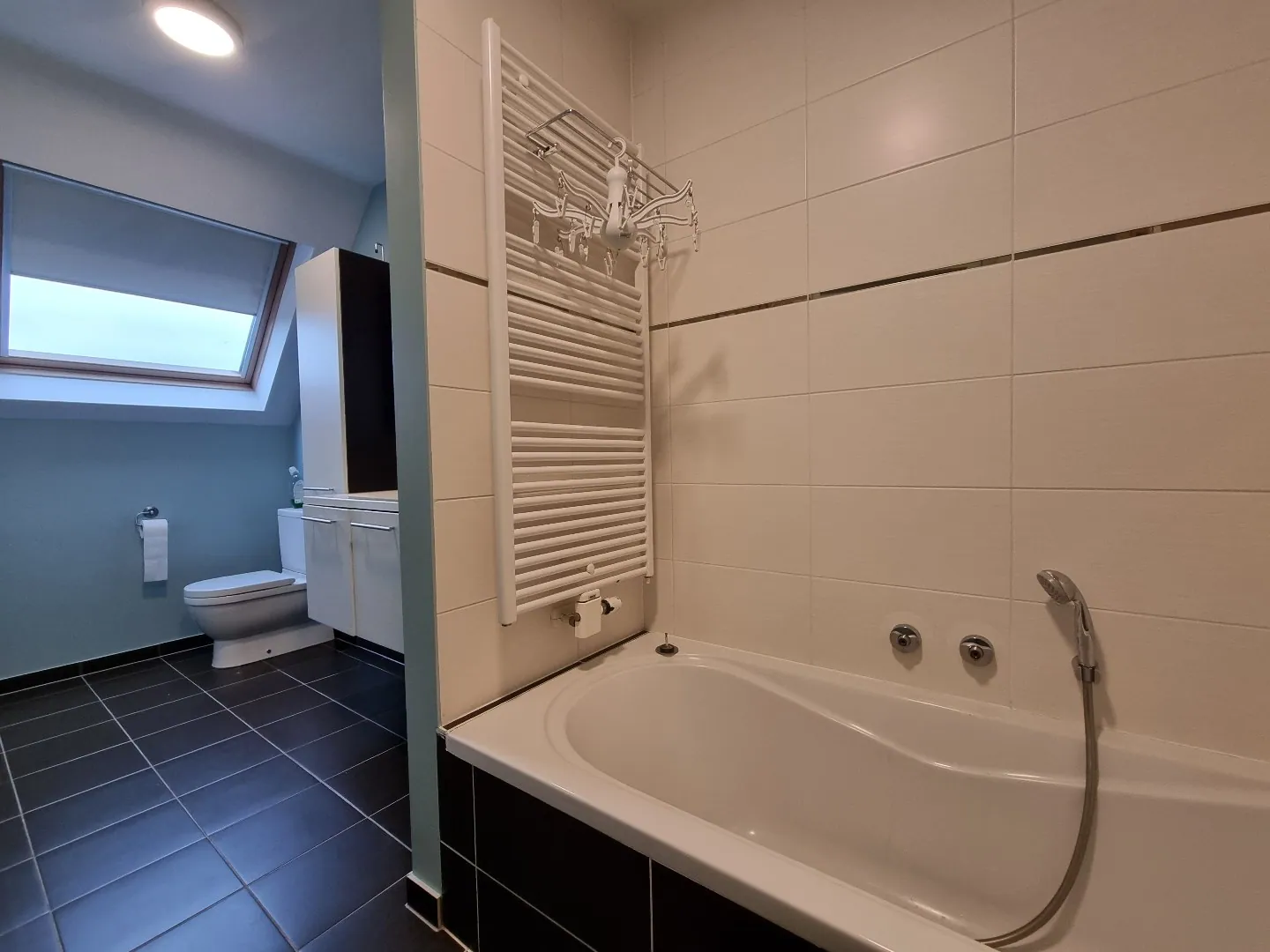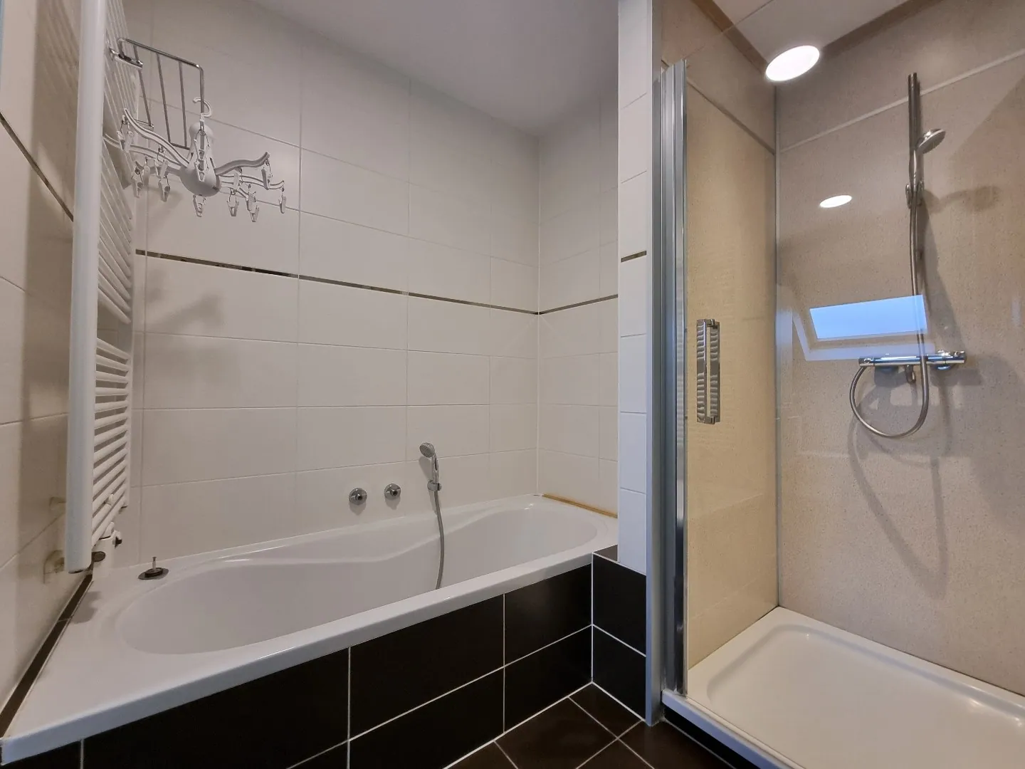 Badkamer met bad, douche, lavabomeubel & toilet,