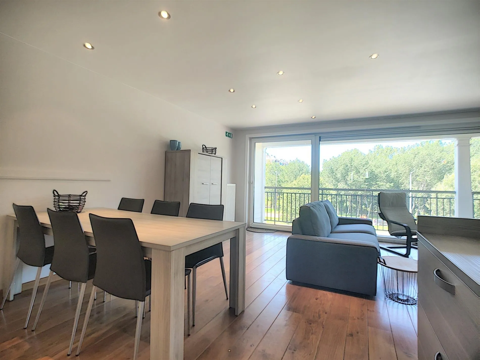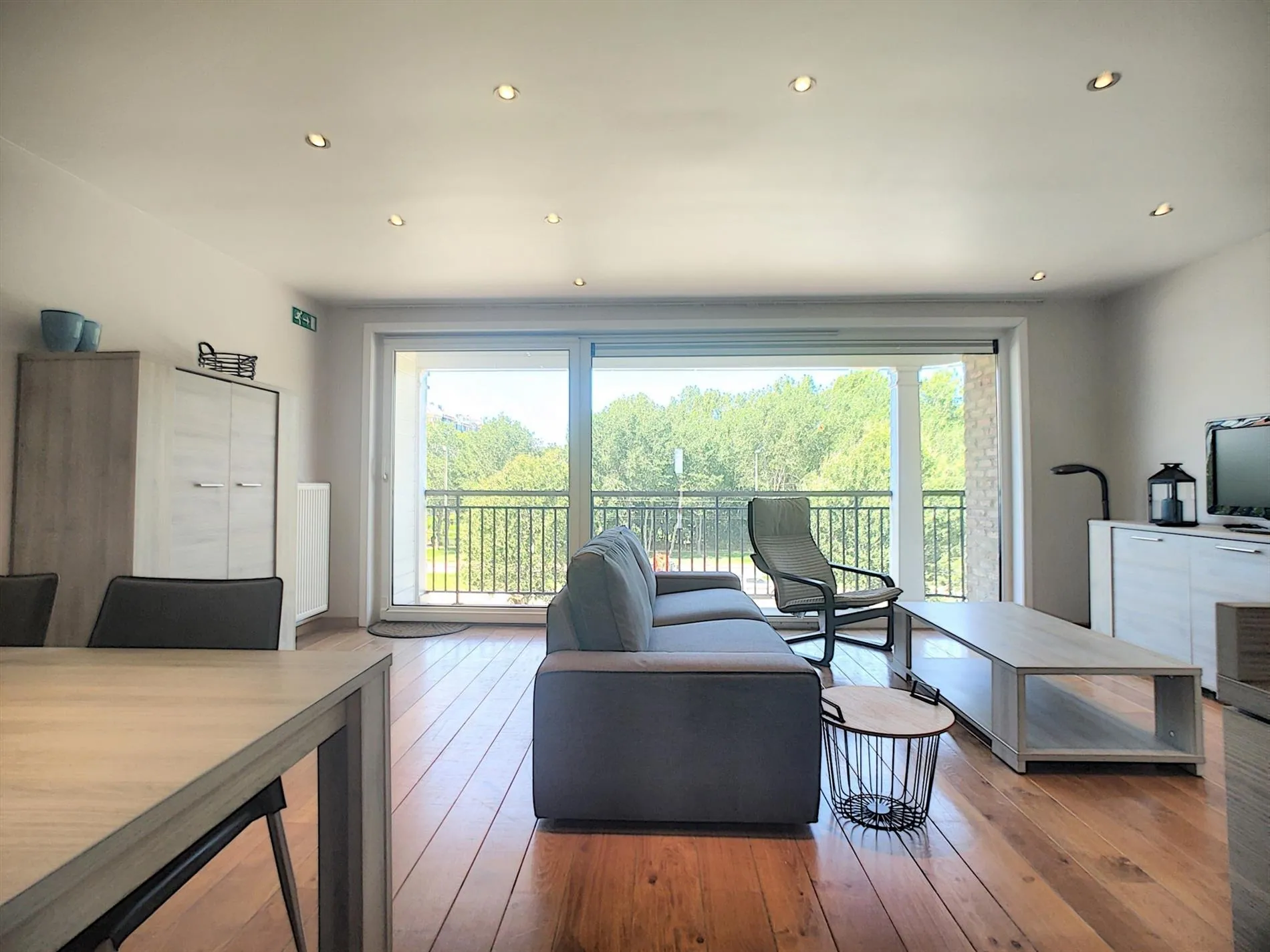 - Zeer aangename leefruimte met toegang tot het ruime balkon met de genoemde, groene zichten,