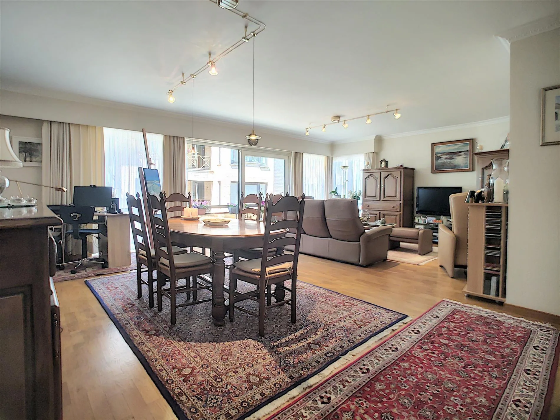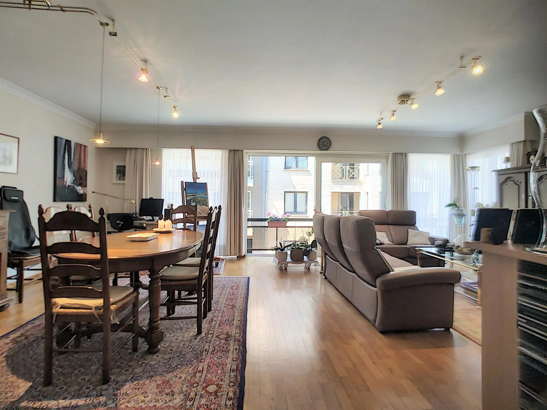 - Enorme leefruimte met zit -en eethoek en toegang tot balkon aan de voorzijde,