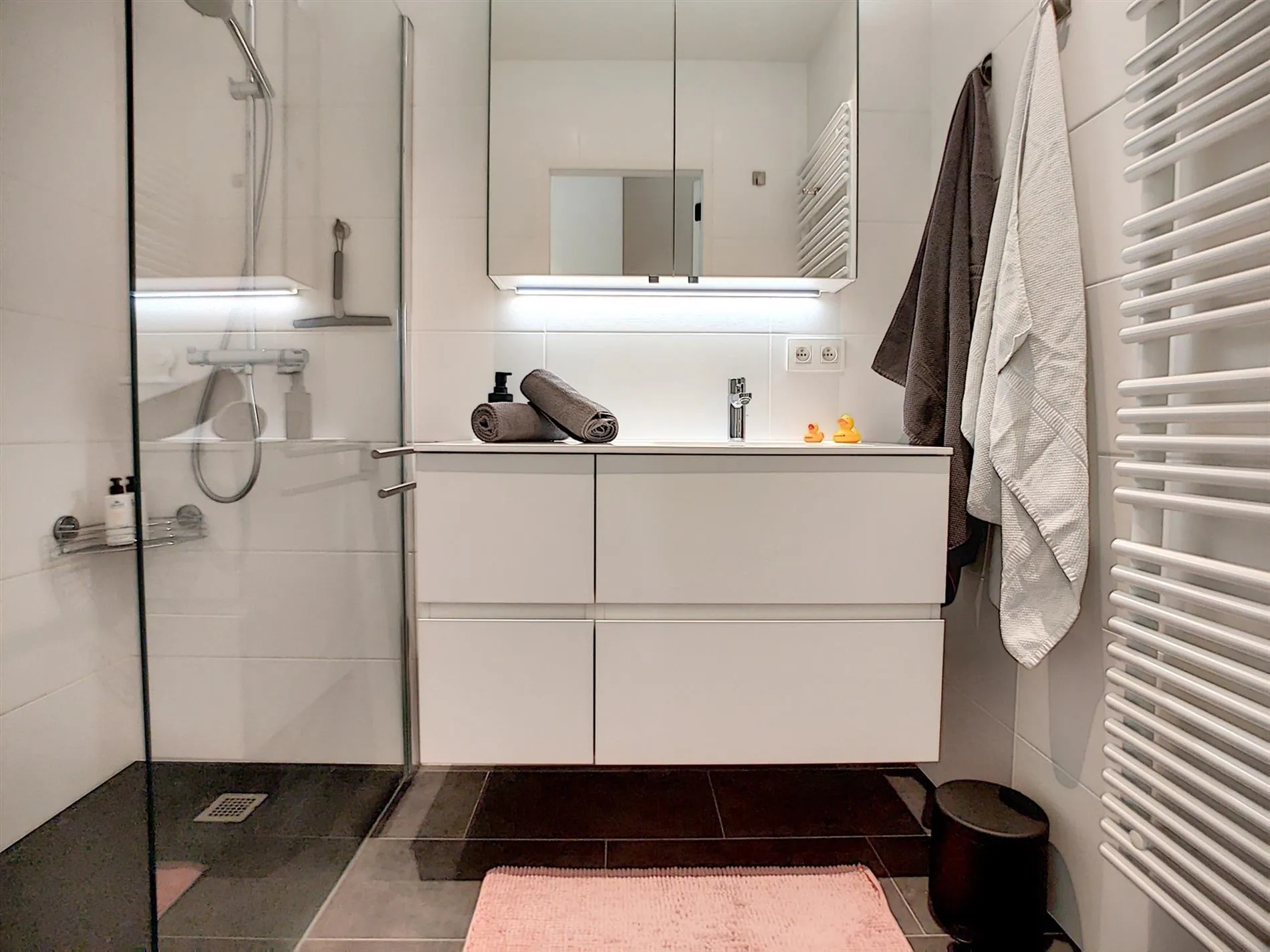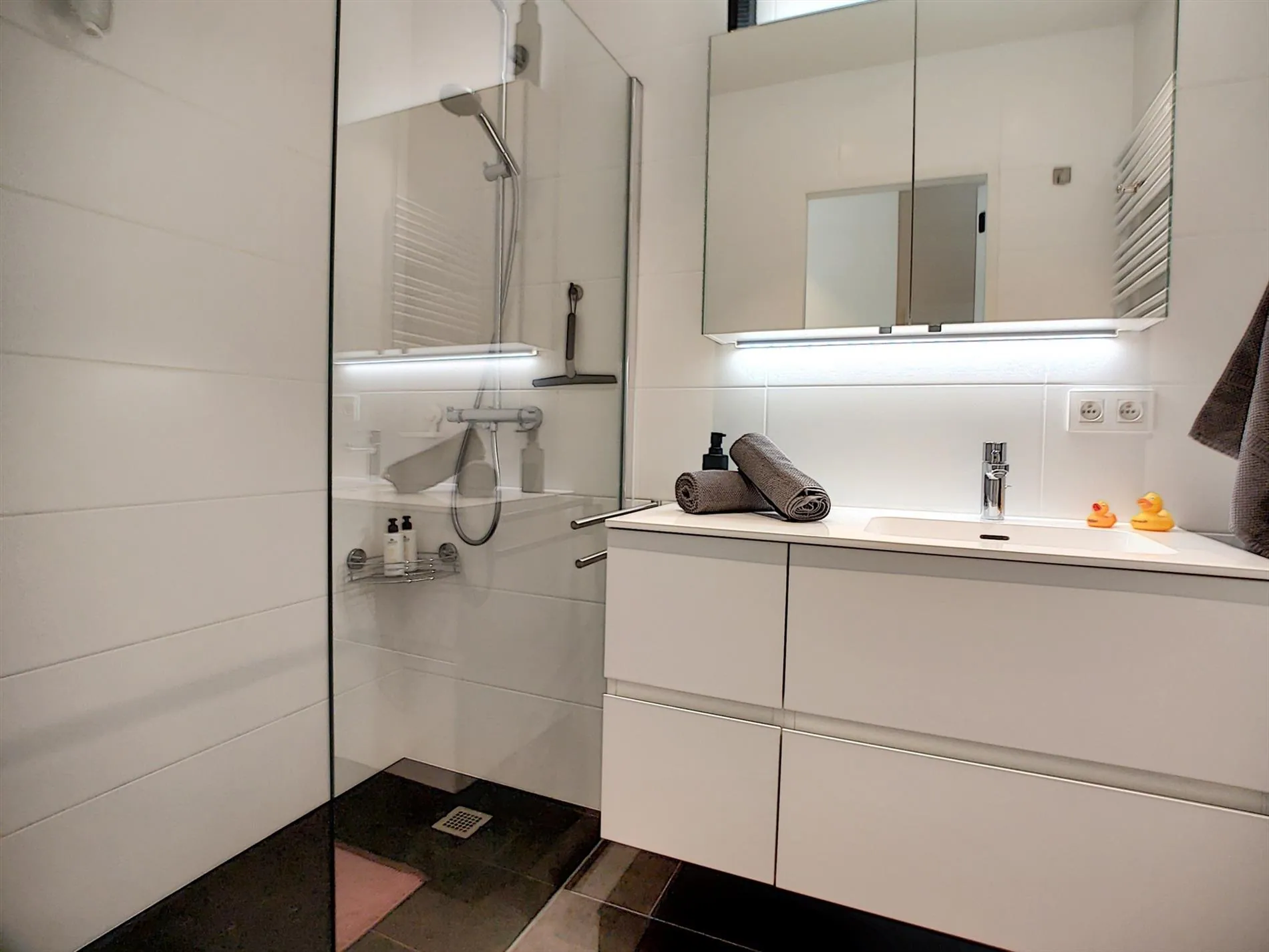 - Prachtige badkamer met inloopdouche en dubbele wastafel,