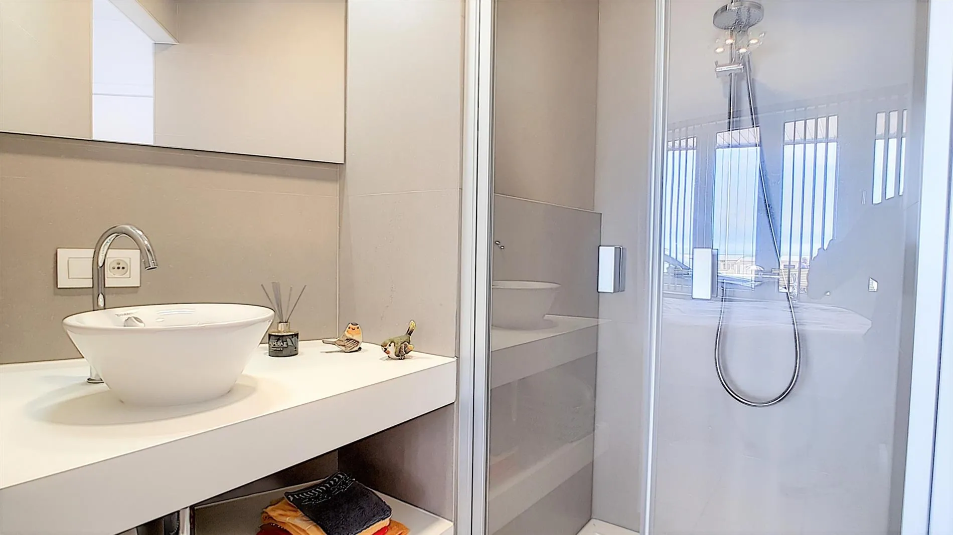 - Twee slaapkamers met ingemaakte kasten. De hoofdslaapkamer is voorzien van een eigen douchekamer met lavabo,