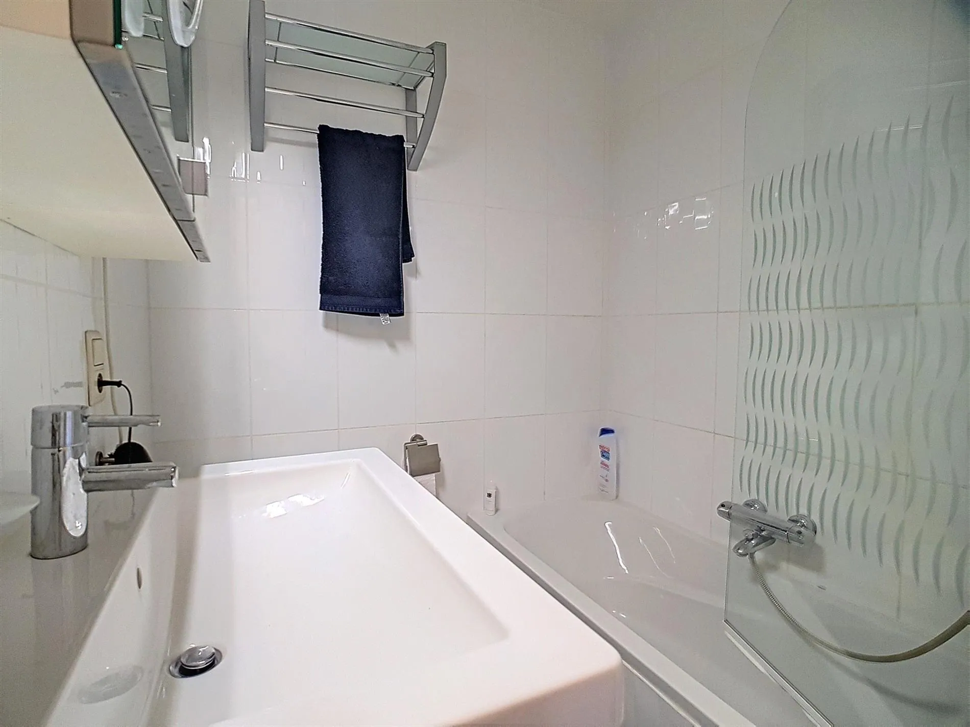 - Badkamer voorzien van ligbad met douchescherm, lavabo & toilet.