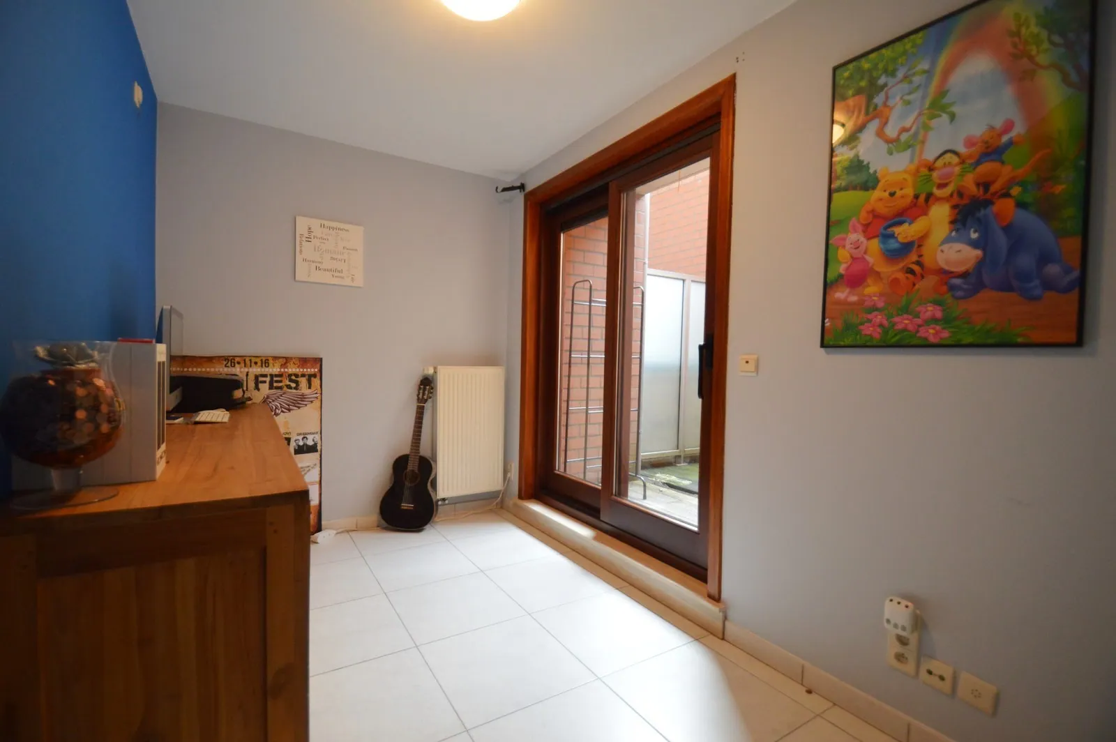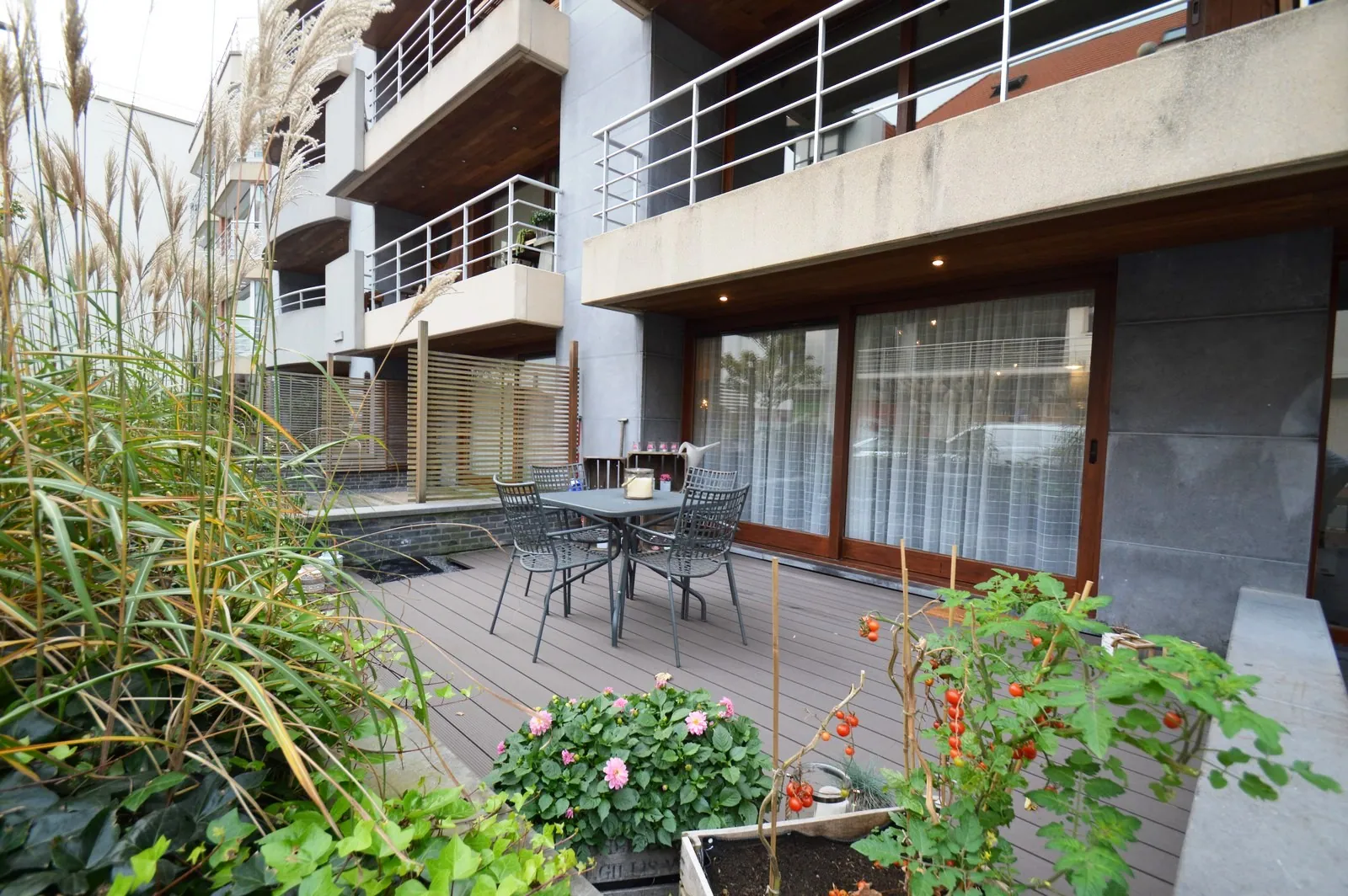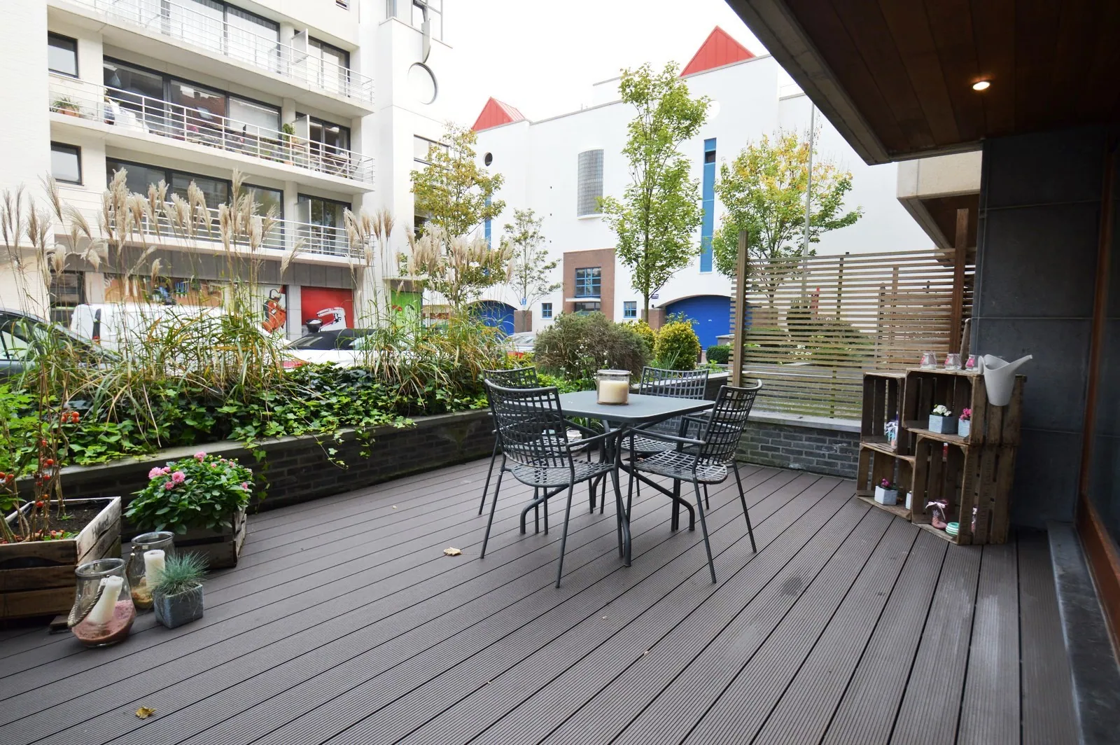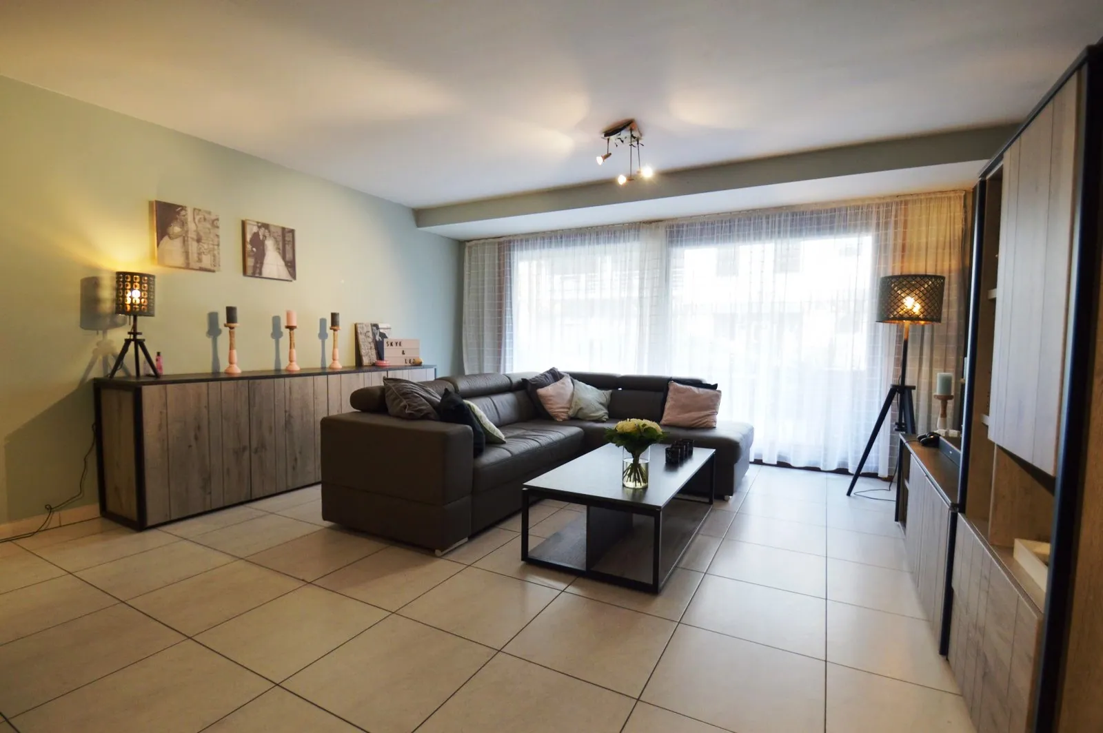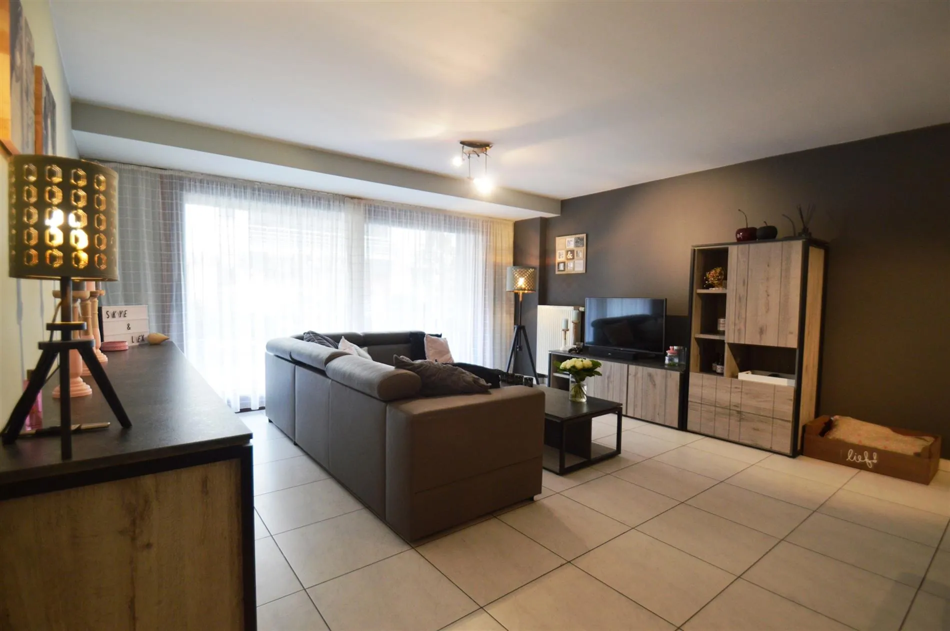 Inkom met vestiaire en gastentoilet, zeer ruime, leuk ingedeelde living met toegang tot het groot terras vooraan, open, volledig ingerichte keuken en aansluitende berging/wasplaats, slaapkamer 1 met ingemaakte kasten en toegang tot terras 2, slaapkamer 2 met toegang tot eigen terrasje, knap gerenoveerde badkamer met inloopdouche en lavabo, extra bergruimte.