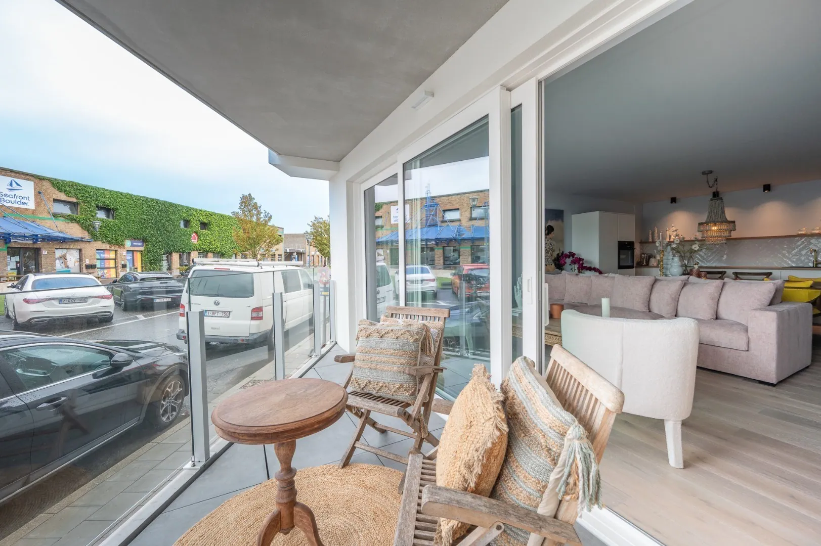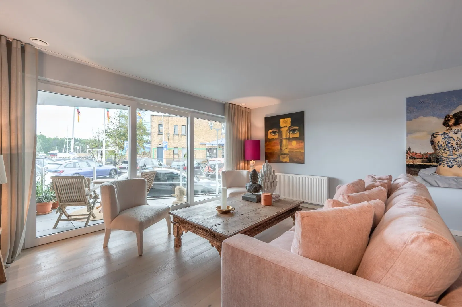 - Lichtrijke leefruimte met toegang tot eerste terras (met zicht over de haven),