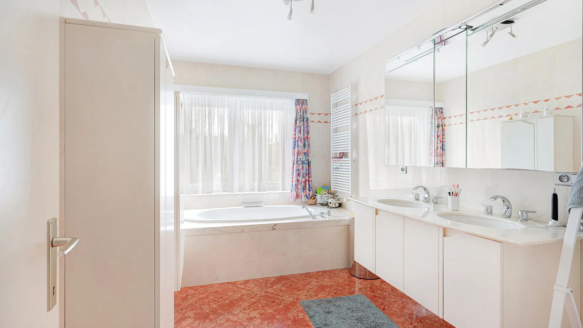 De woning werd stevig en degelijk gebouwd en verkeert in een goed onderhouden staat. Met een royale bewoonbare oppervlakte van maar liefst 360 m² biedt deze woning tal van mogelijkheden, zowel voor grote gezinnen als voor wie wonen en werken wenst te combineren. Bovendien geniet U hier van een gunstige EPC-score (label B) en zonnepanelen, wat bijdraagt aan een energiezuinig en duurzaam wooncomfort.