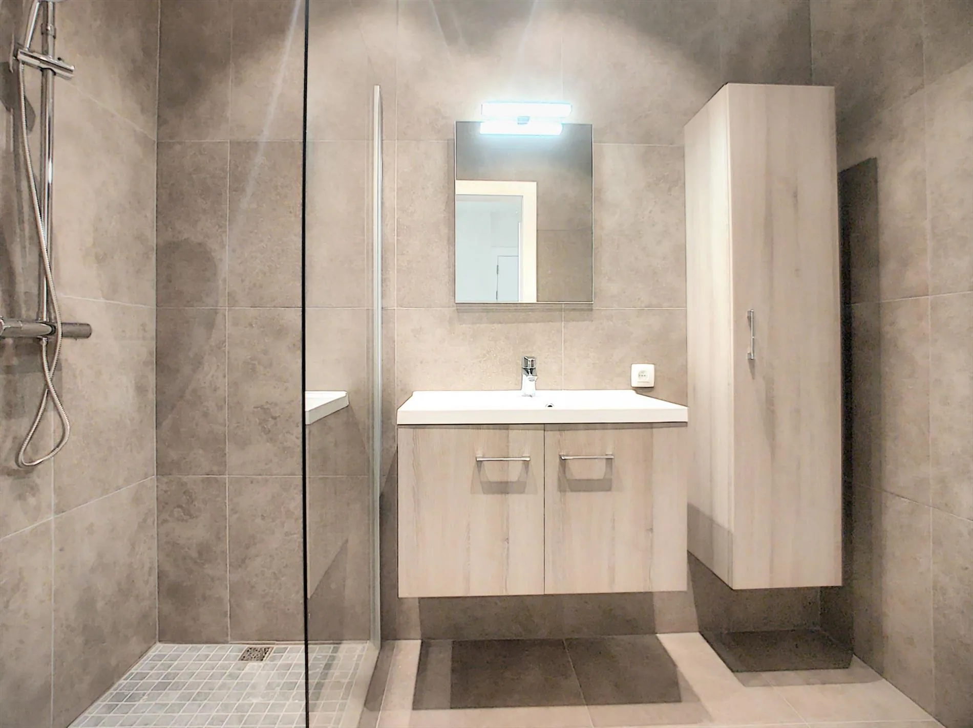 - Knappe badkamer met inloopdouche, lavabo en bijhorend meubel.