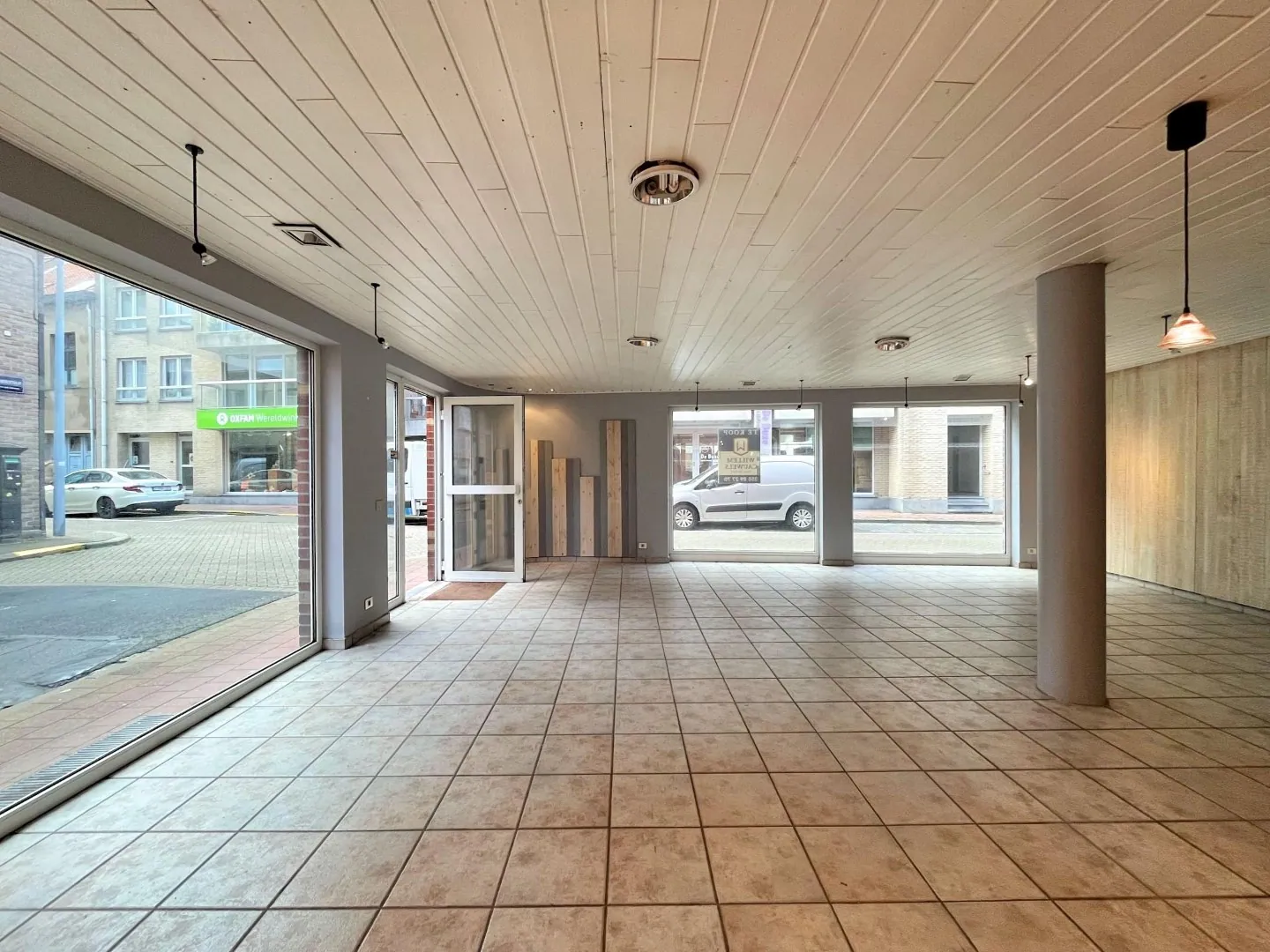 Deze commerciële ruimte beschikt over een grote etalage, een lichtrijke showroom of kantoorruimte, keukentje en een grote kelder toegankelijk vanuit de winkel.