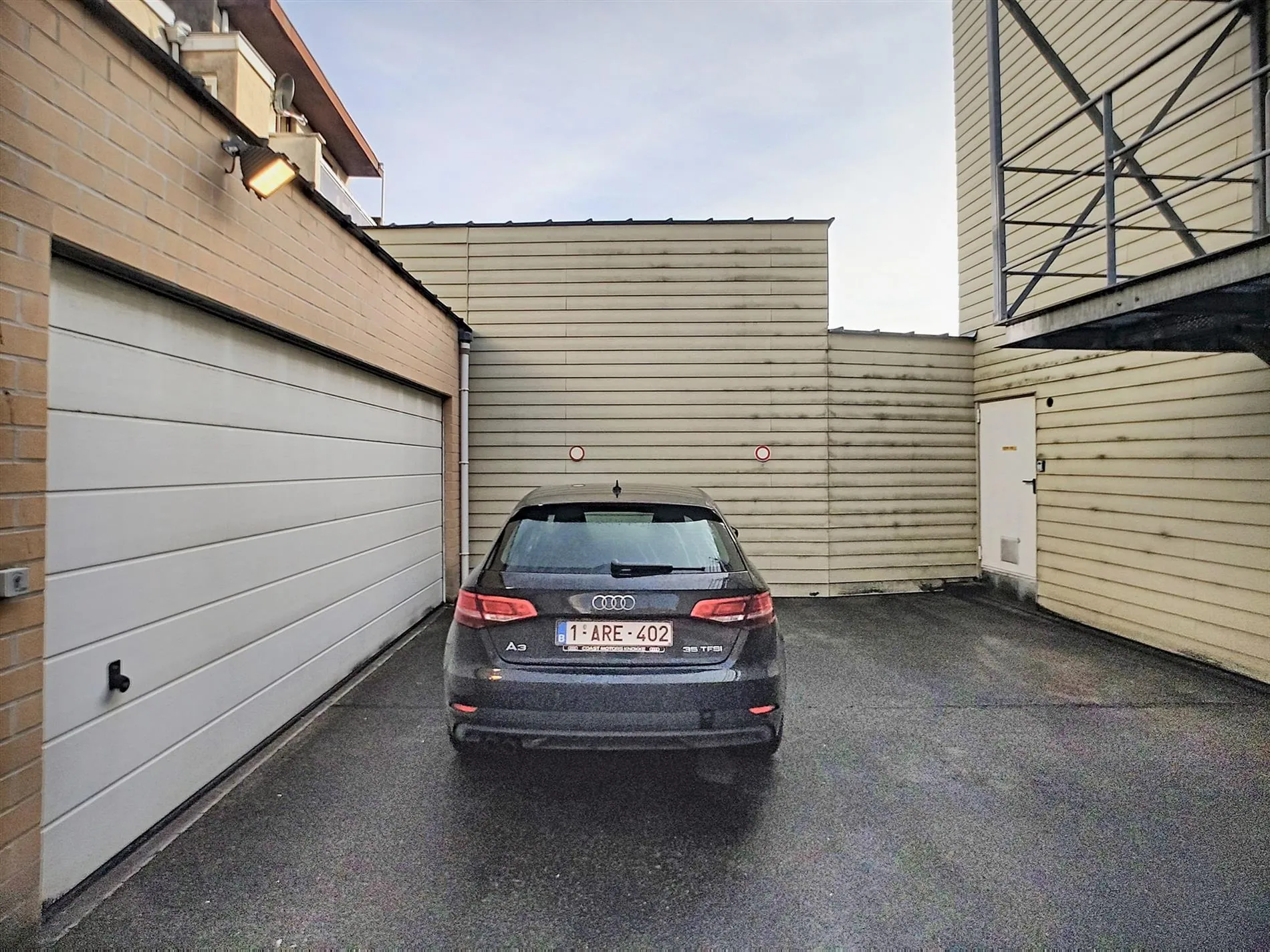 Dubbele garagebox met extra plaats om een wagen voor de garage te parkeren, en dit op het gelijkvloers in een recent complex nabij de Kursaalstraat. Vrij uniek aanbod.