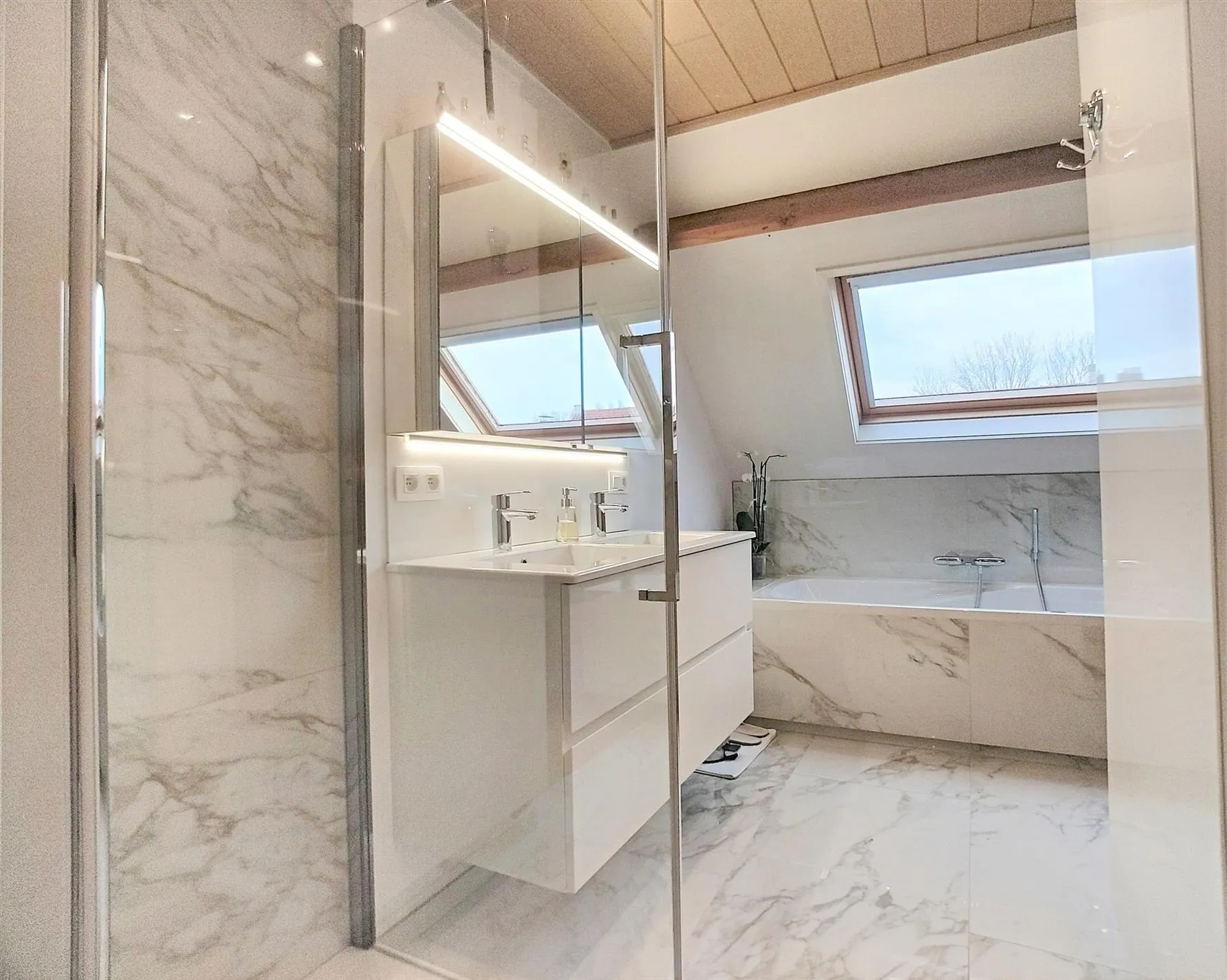 - Eerste badkamer voorzien van douche, lavabo & toilet,