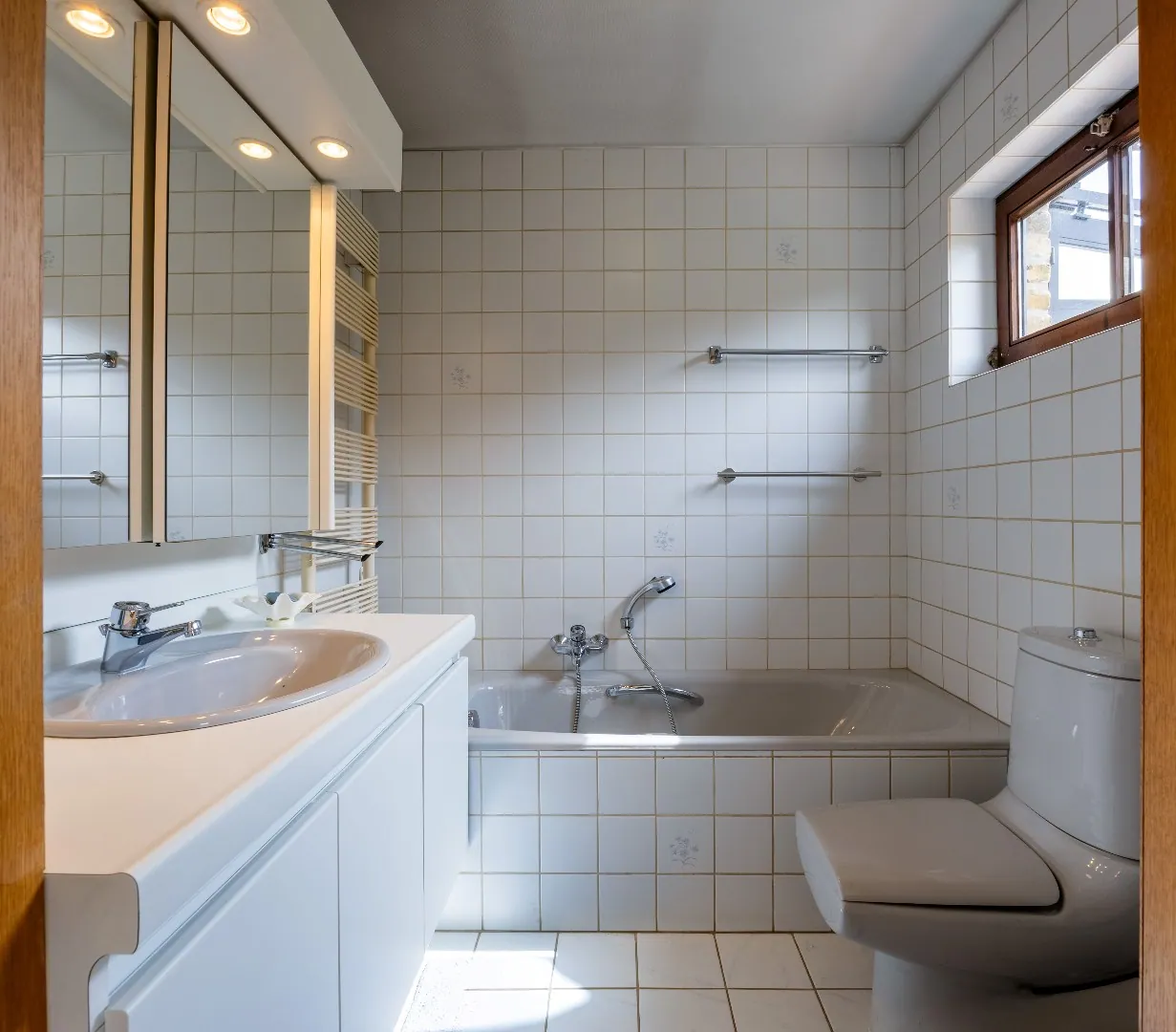 - Badkamer met bad en wastafel (gelijkvloers),