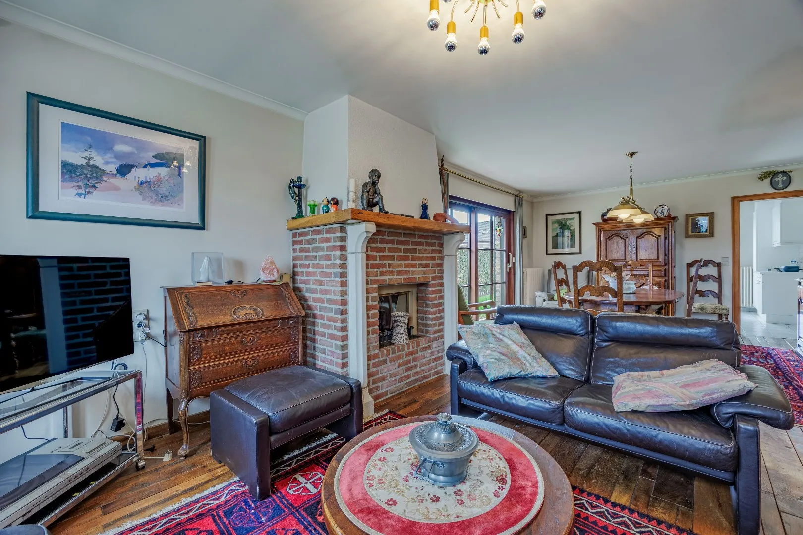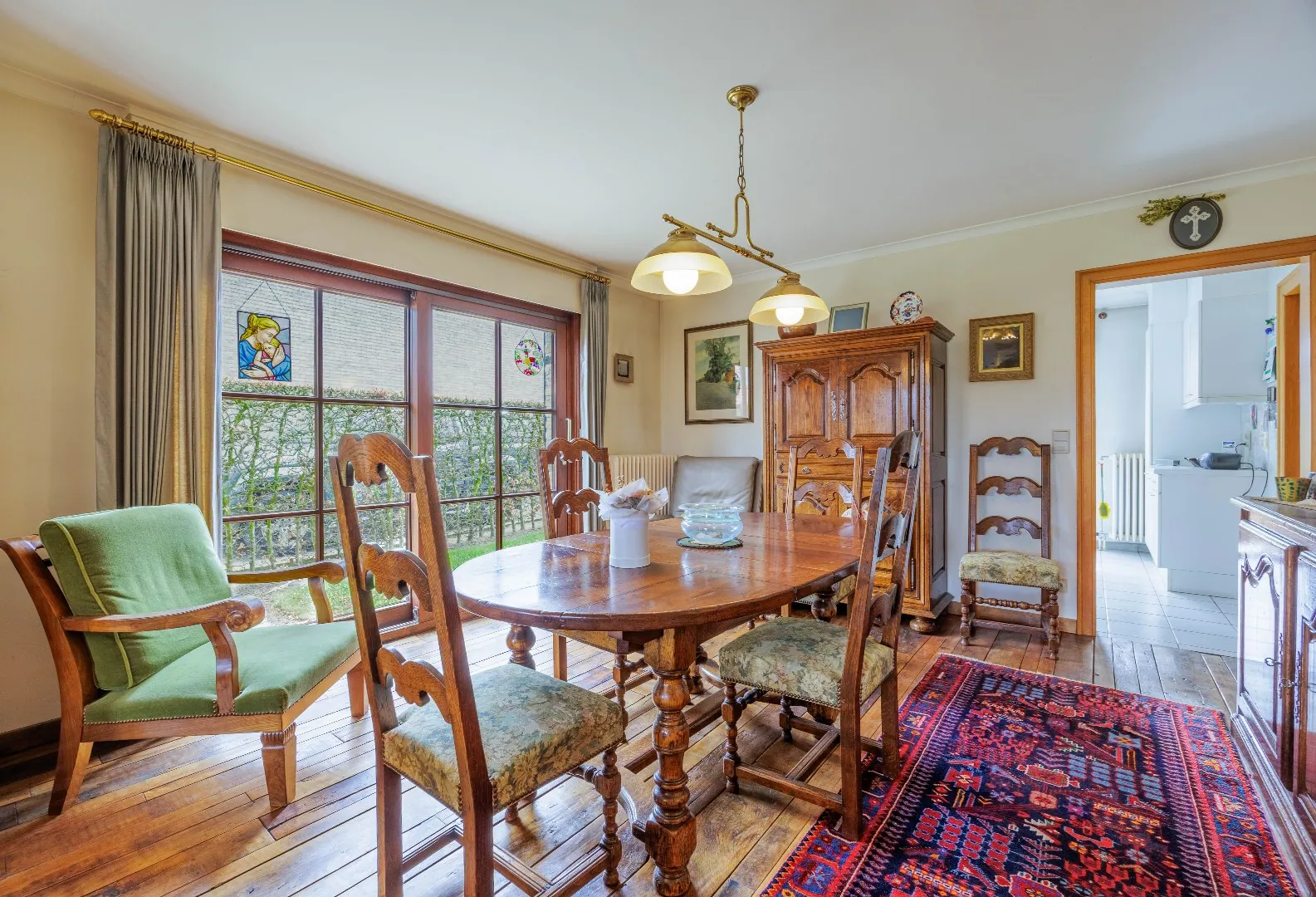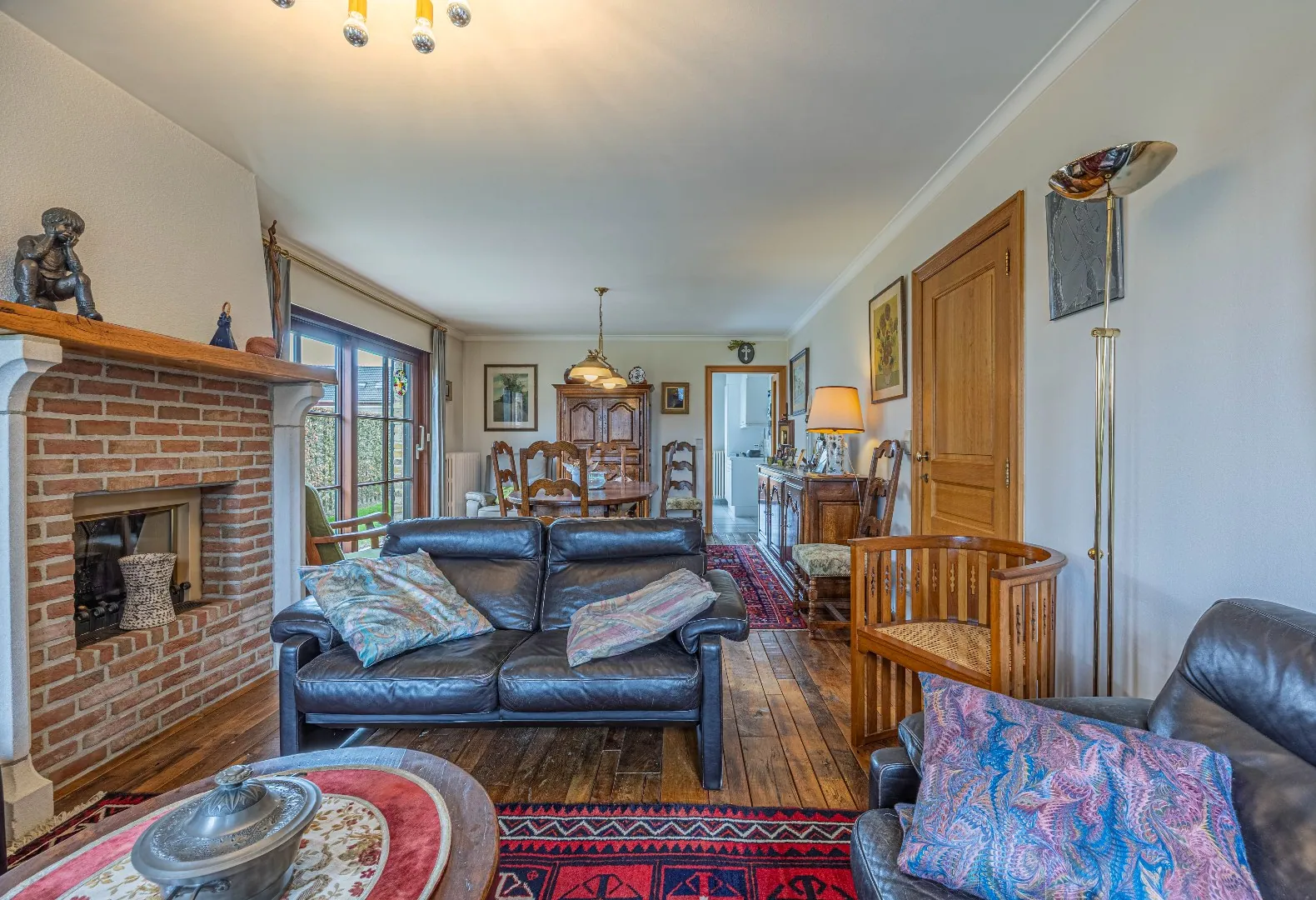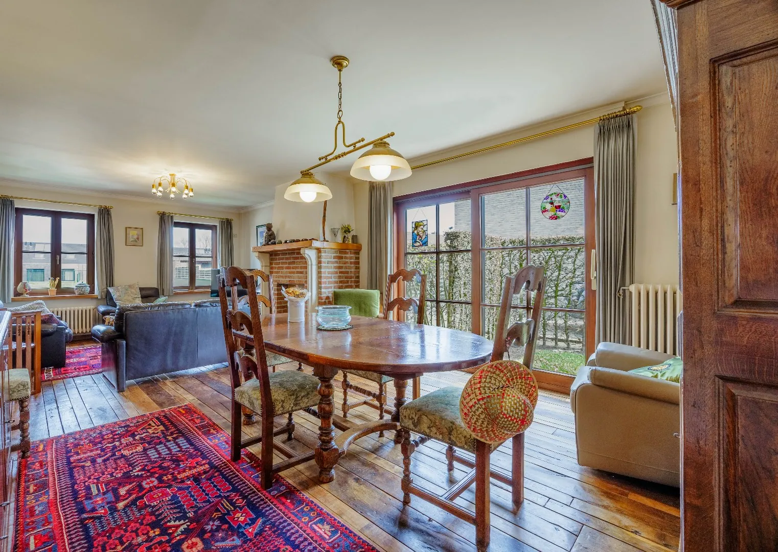 Bij het betreden van de woning valt meteen de warme uitstraling op, mede dankzij de prachtige parketvloer in de leefruimte. De woning ademt karakter, met onder andere koperen goten en duurzame materialen die doorheen de jaren hun kwaliteit hebben bewezen. Dankzij de zuidgerichte tuin geniet U hier de hele dag door van zon op het perceel – een absolute troef voor wie houdt van licht en buitenleven.