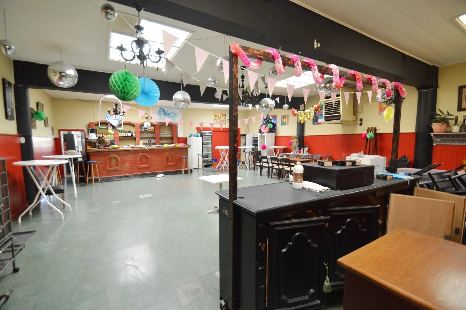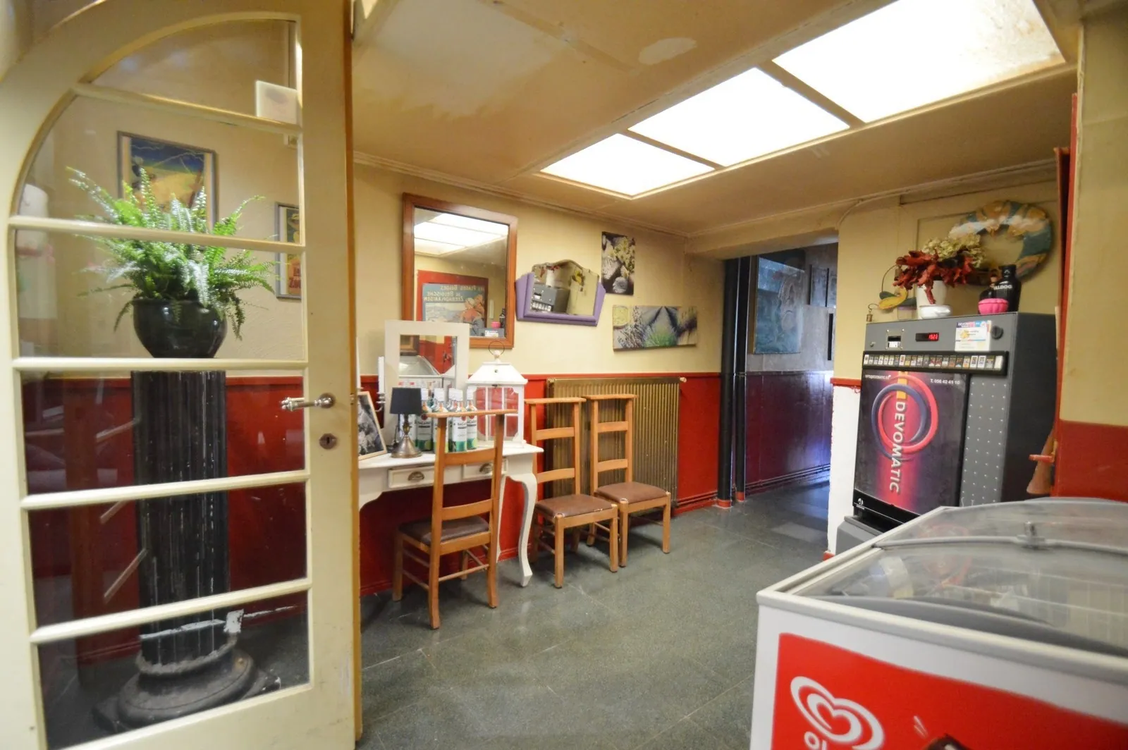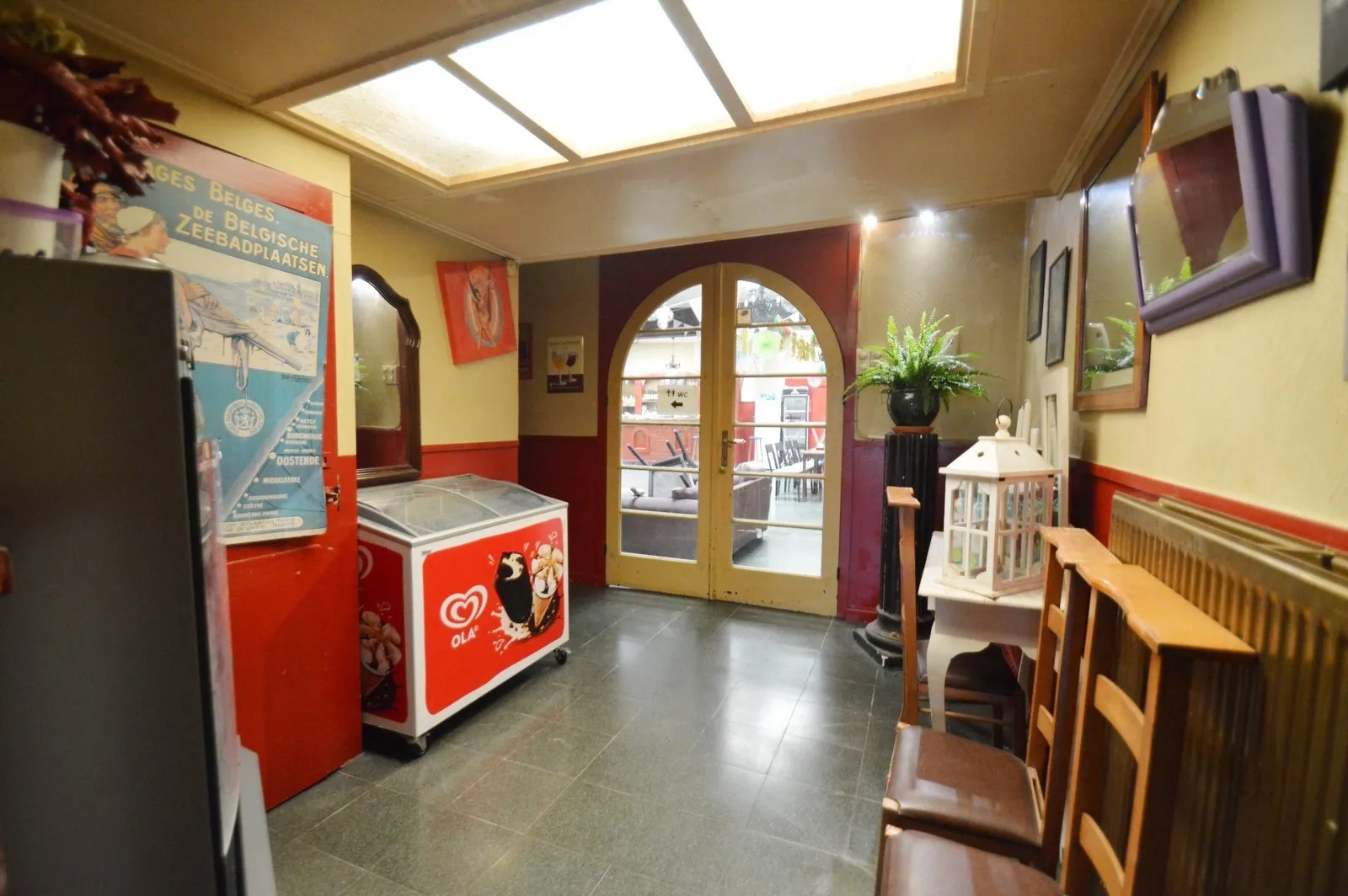 - Het café met verbruikszaal en aansluitende keuken,