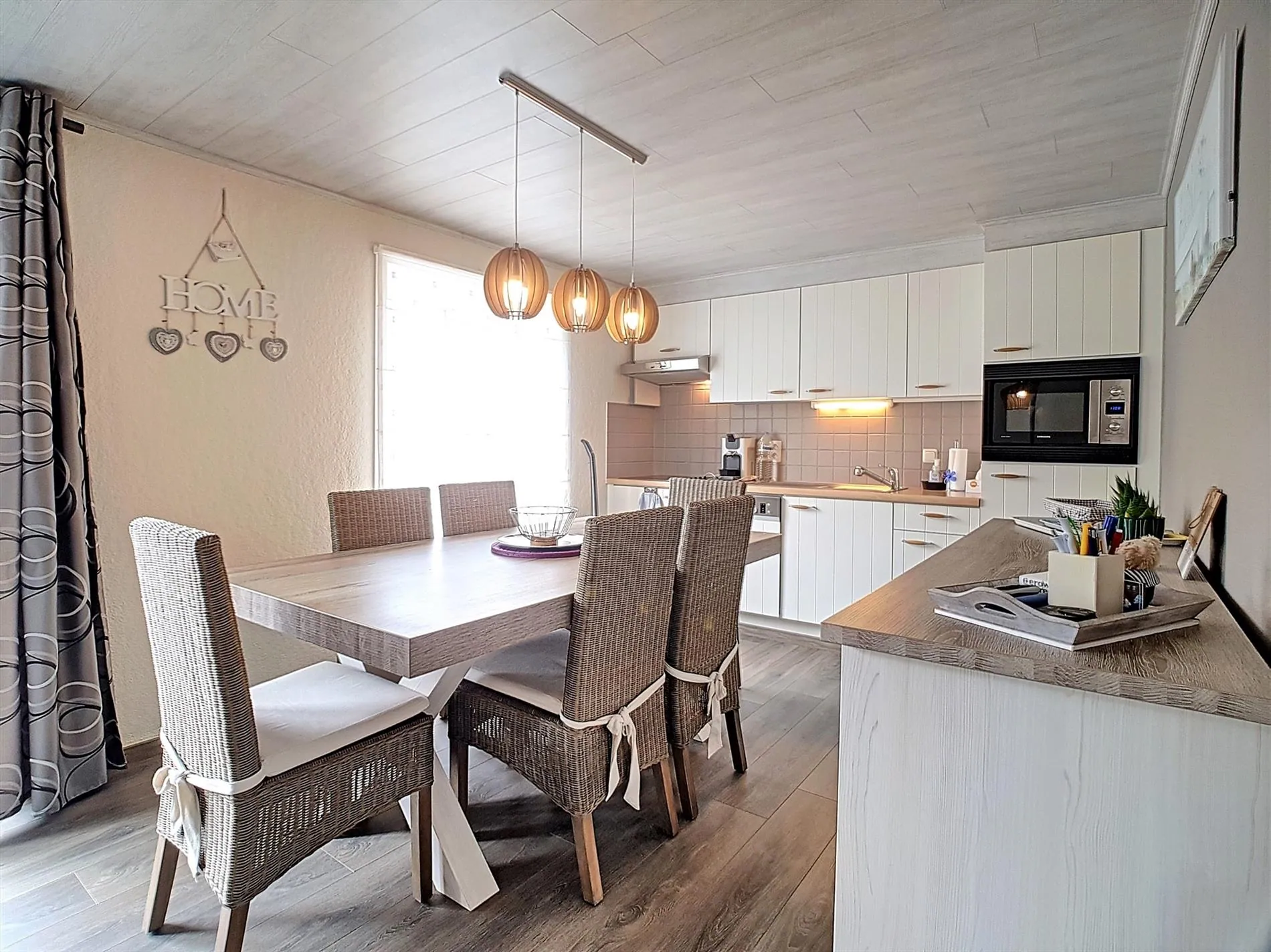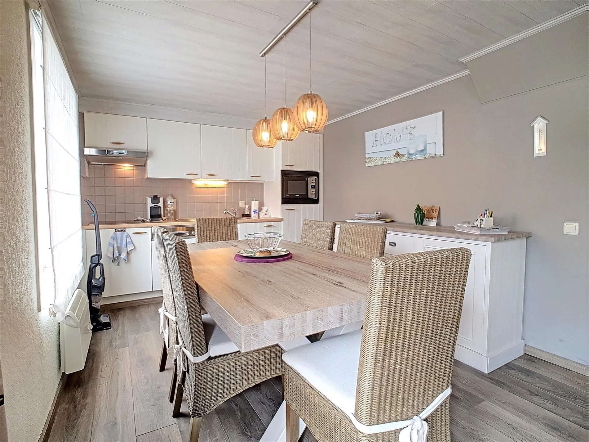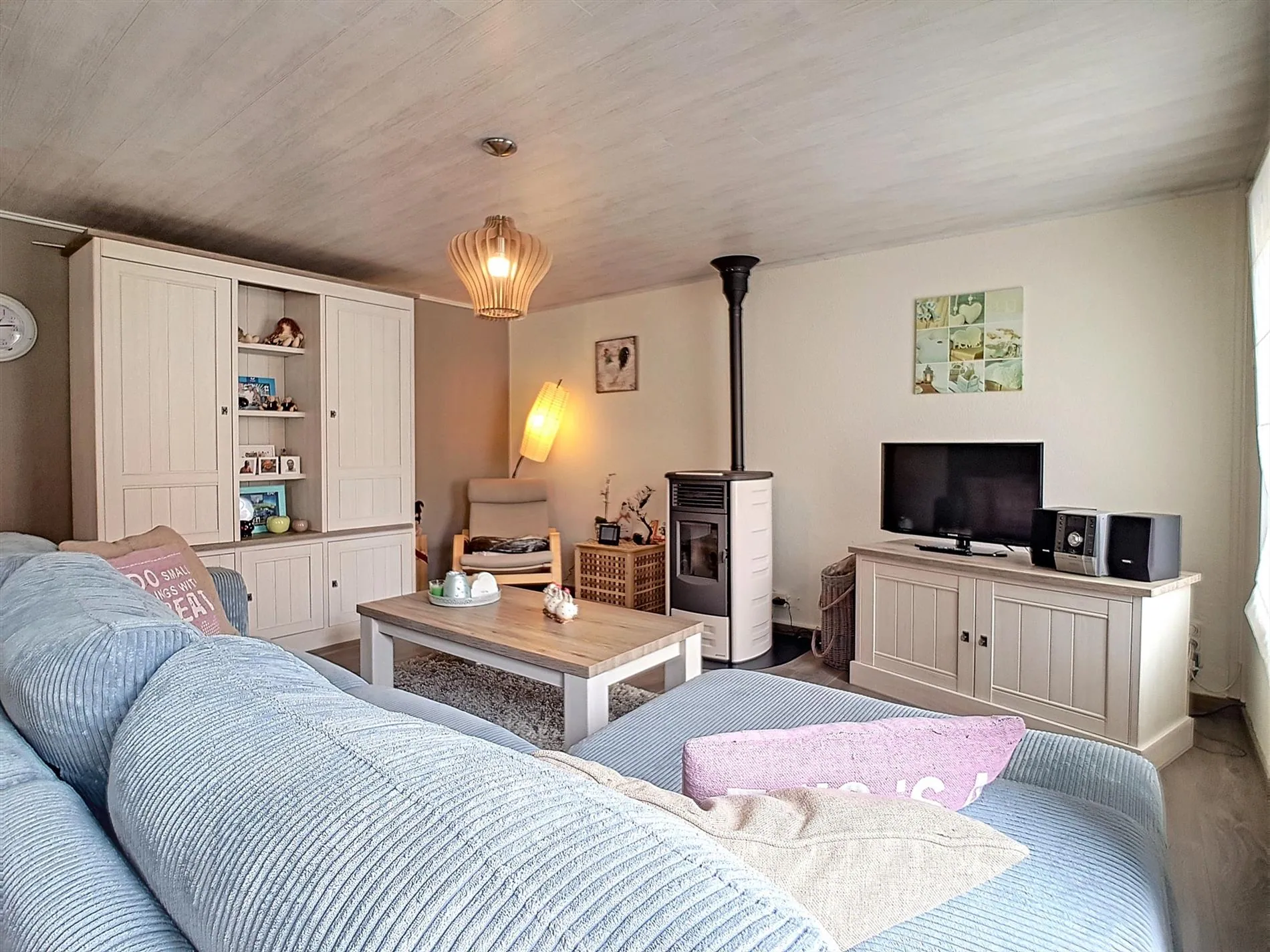 - Lichtrijke, aangename leefruimte met zit -en eethoek. De aanwezige pelletkachel zorgt voor extra gezelligheid in de koudere periodes.