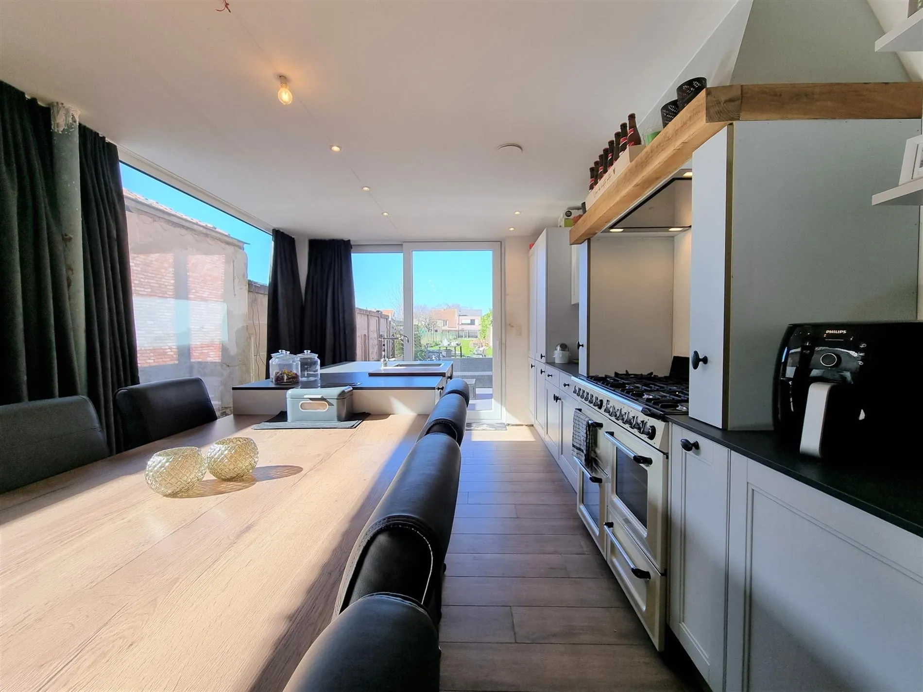 - Open, volledig ingerichte leefkeuken met zicht op de tuin,
