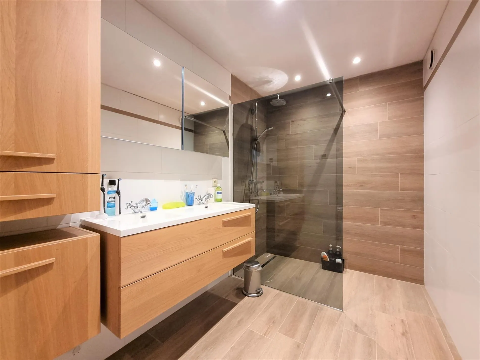 - Knappe badkamer voorzien van inloopdouche, dubbele wastafel en meubel,