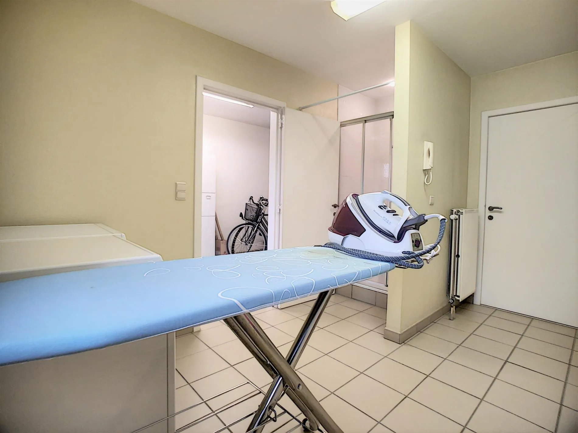 - Aansluitende berging/wasplaats met douche,