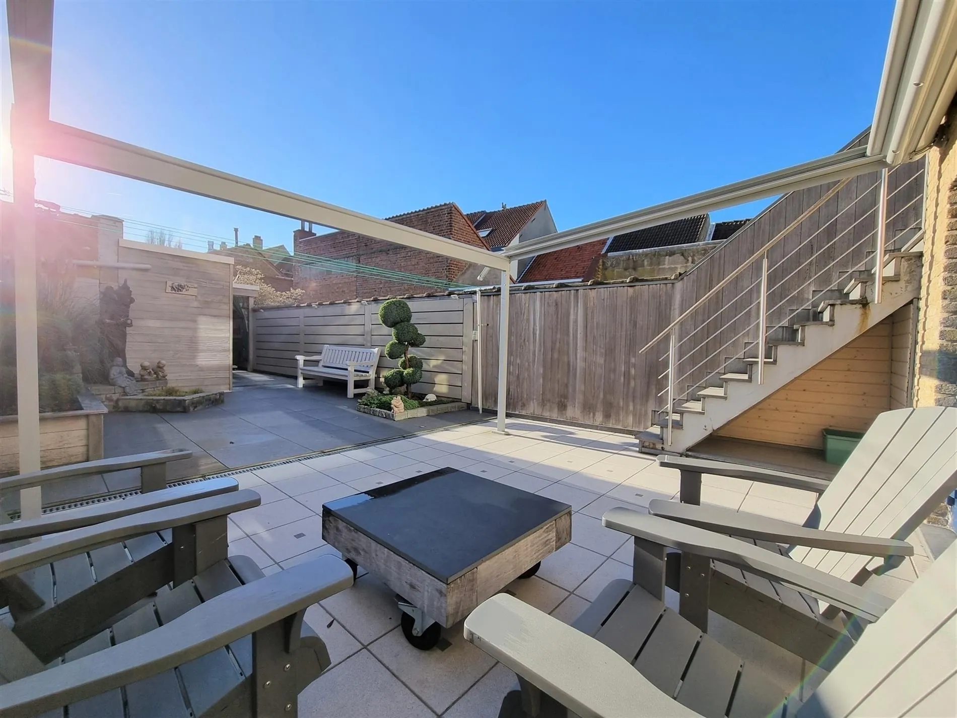 - Aangelegde, zongerichte tuin/terras met tuinberging, Het terras is voorzien van een zonneluifel,