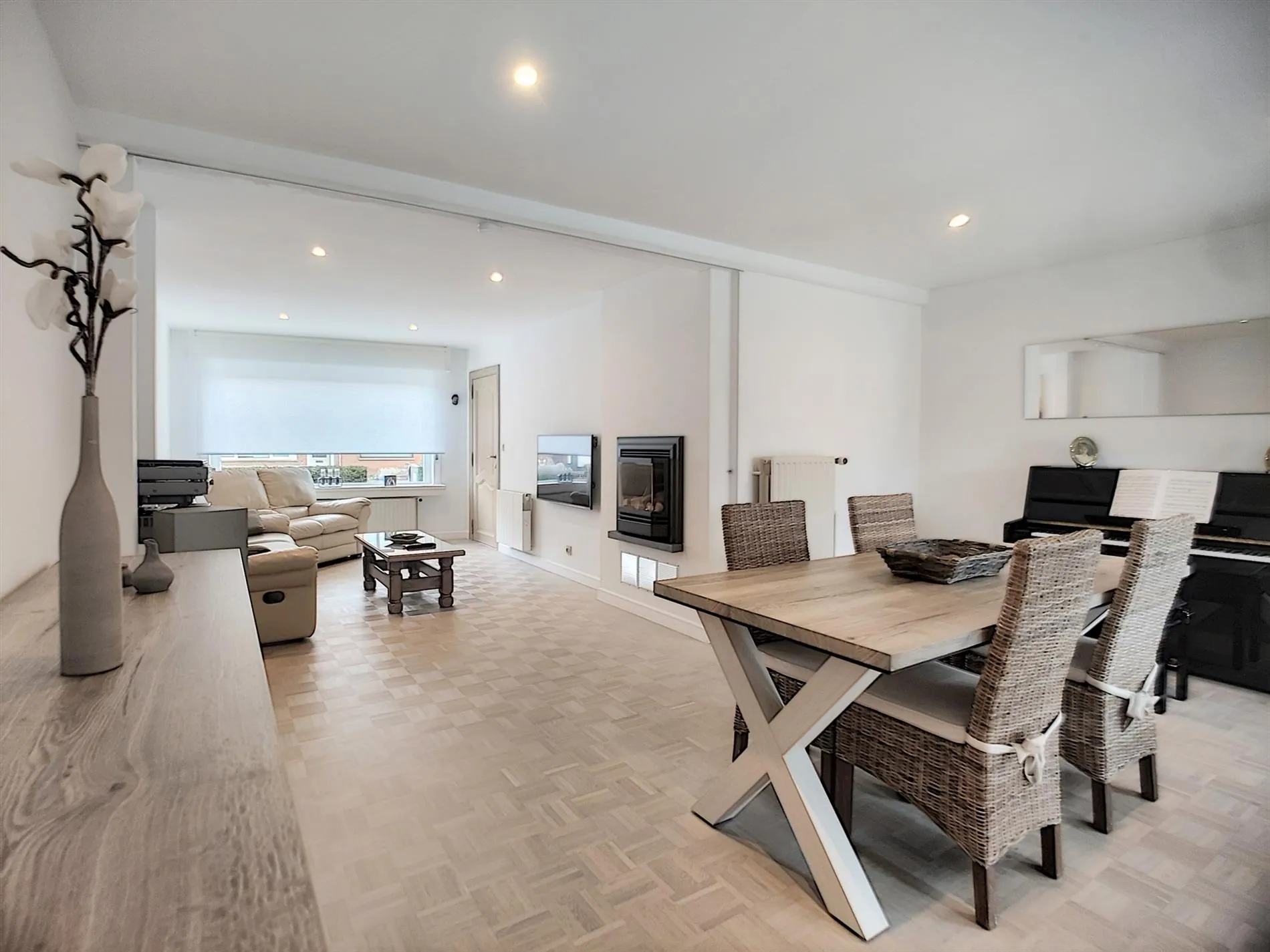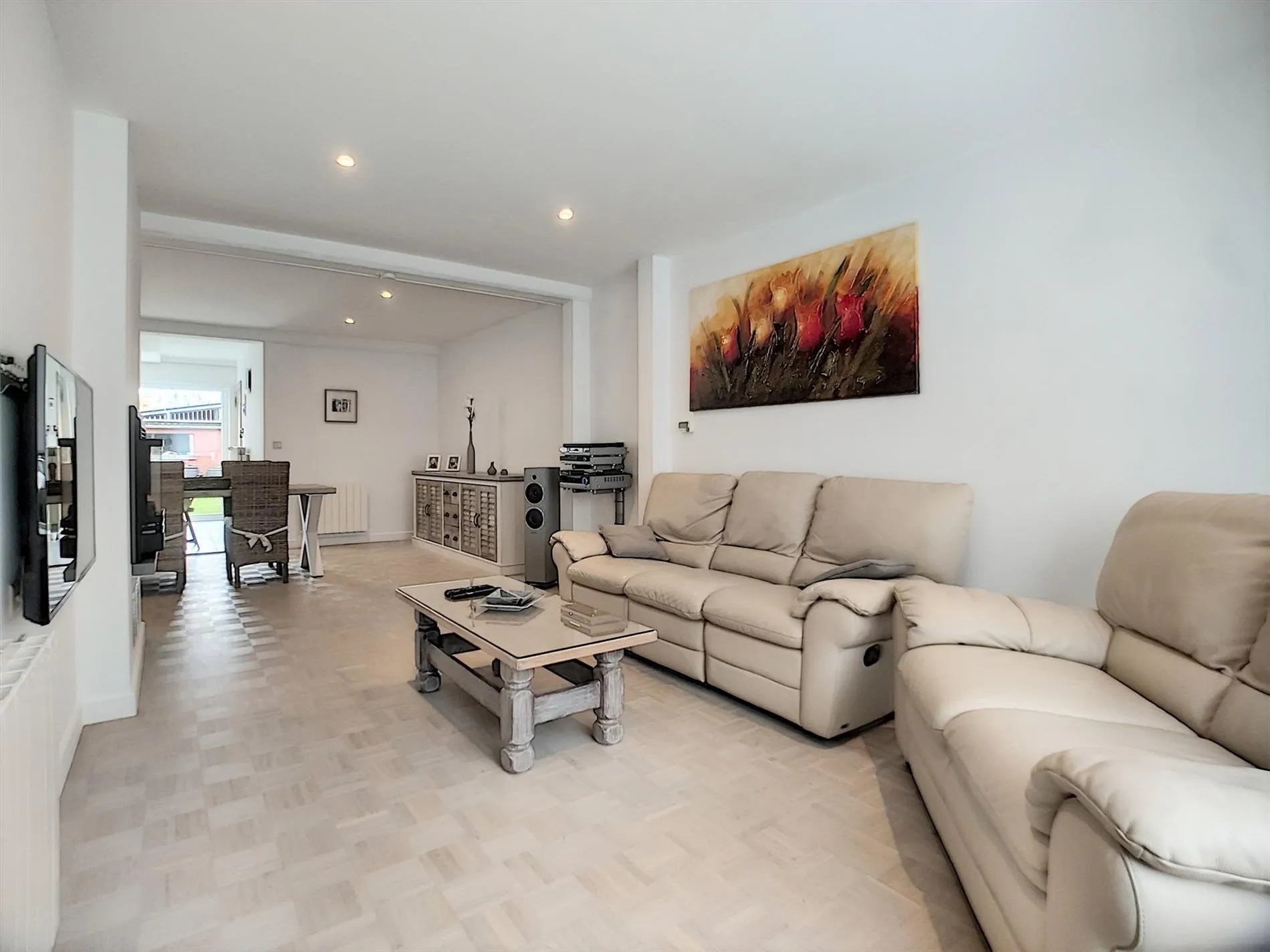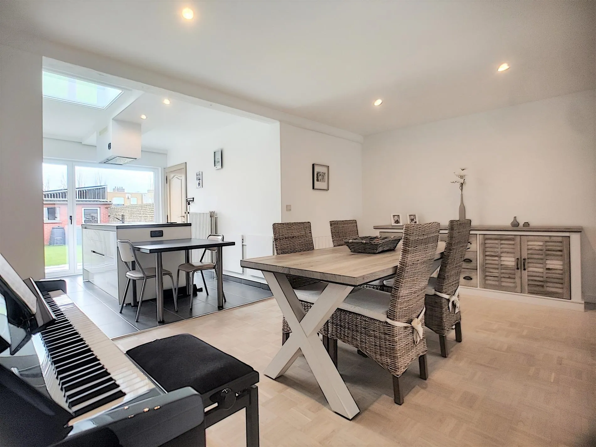 - Zeer lichtrijke leefruimte met zit -en eethoek,