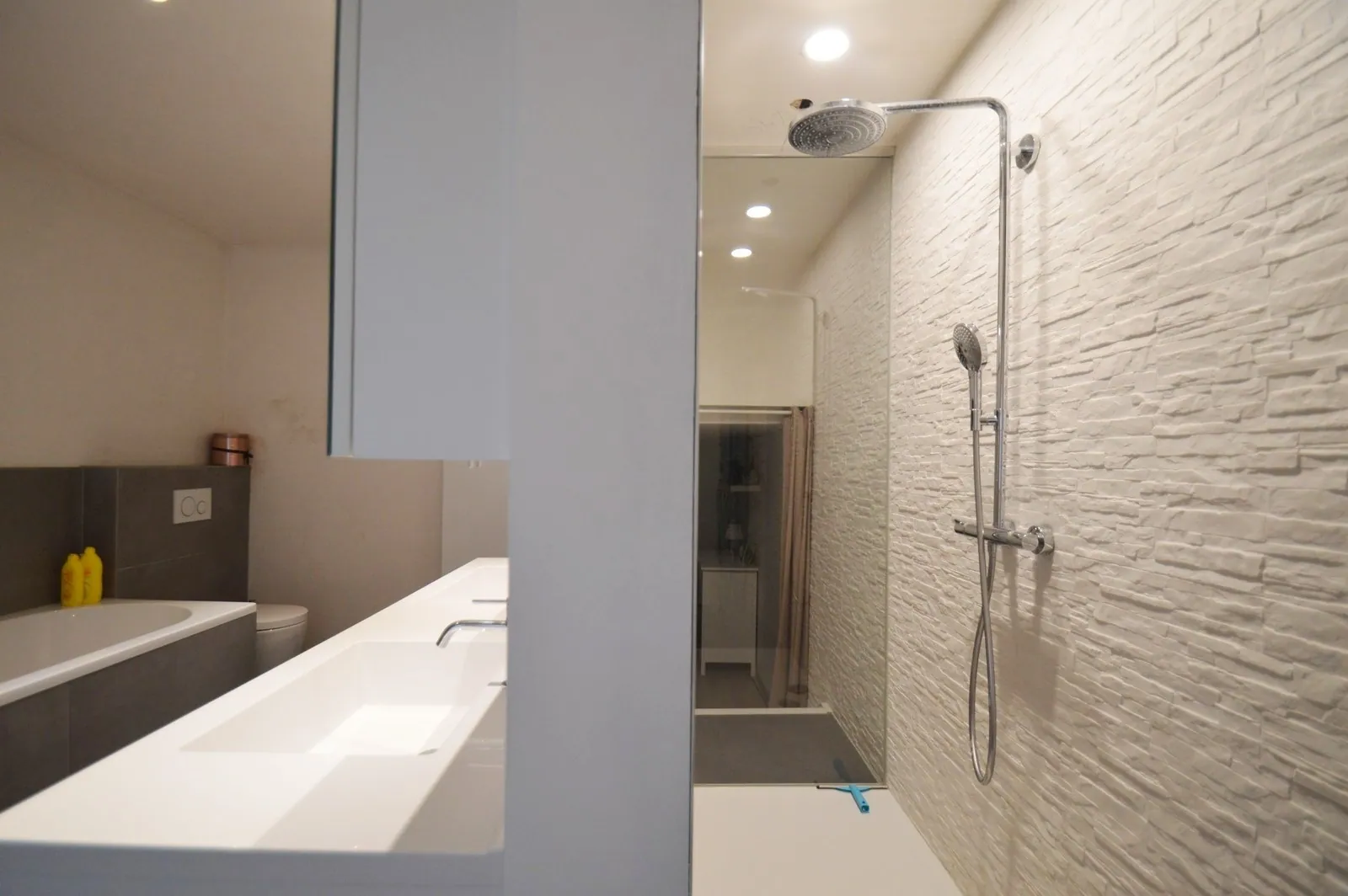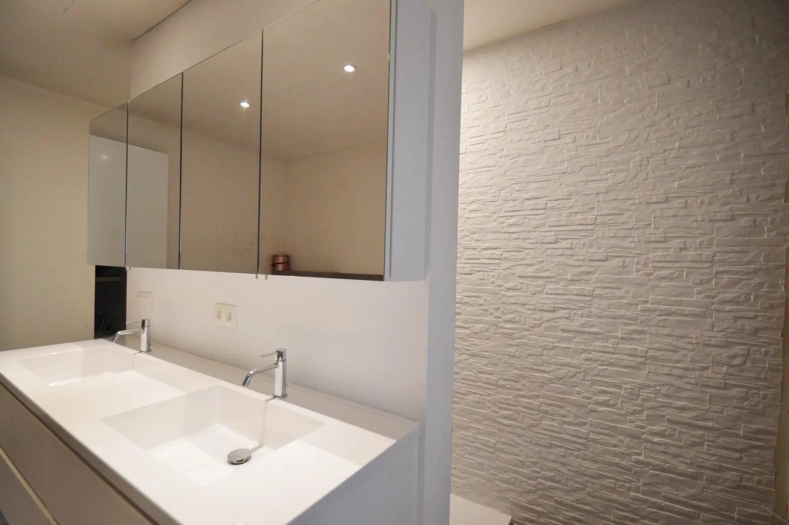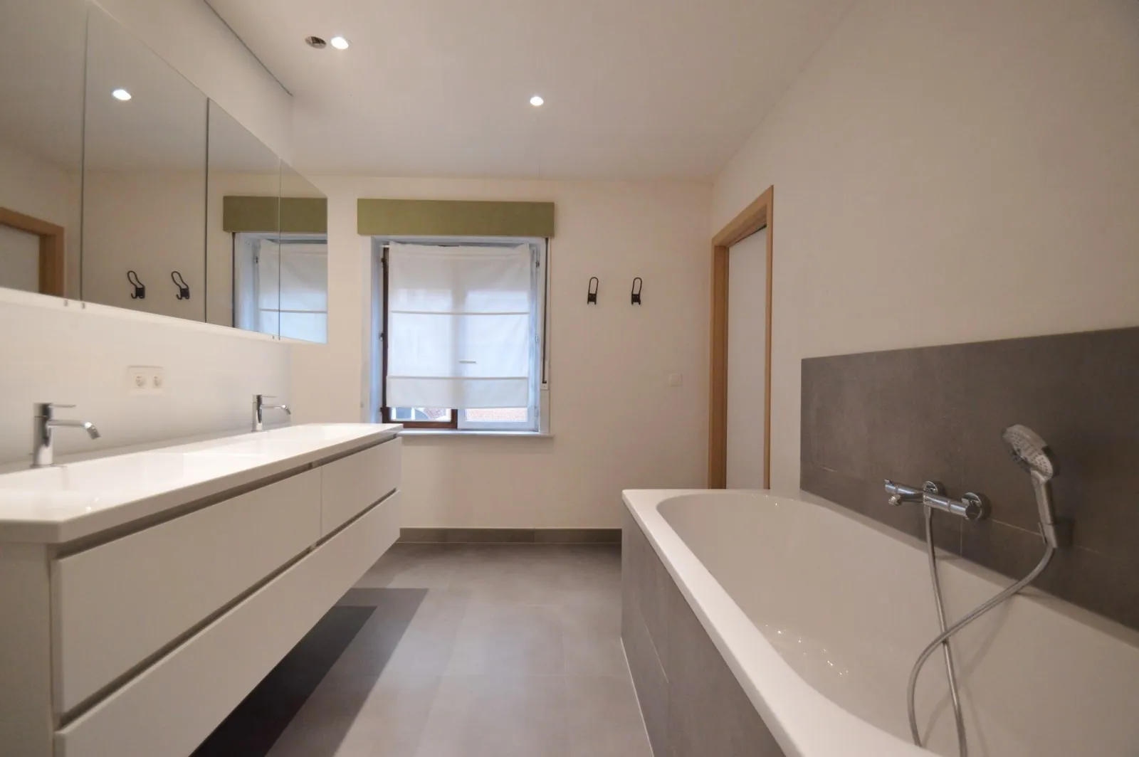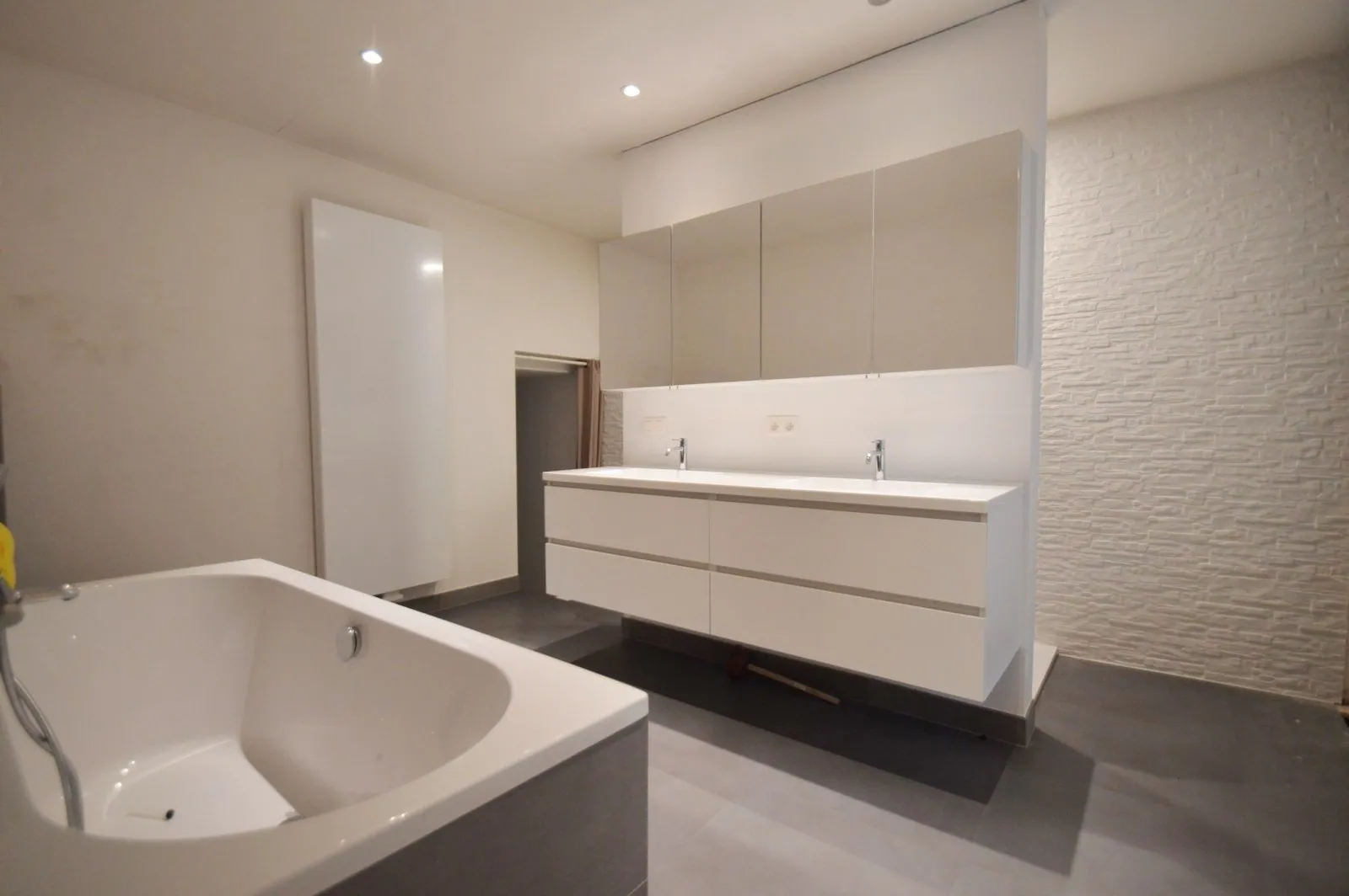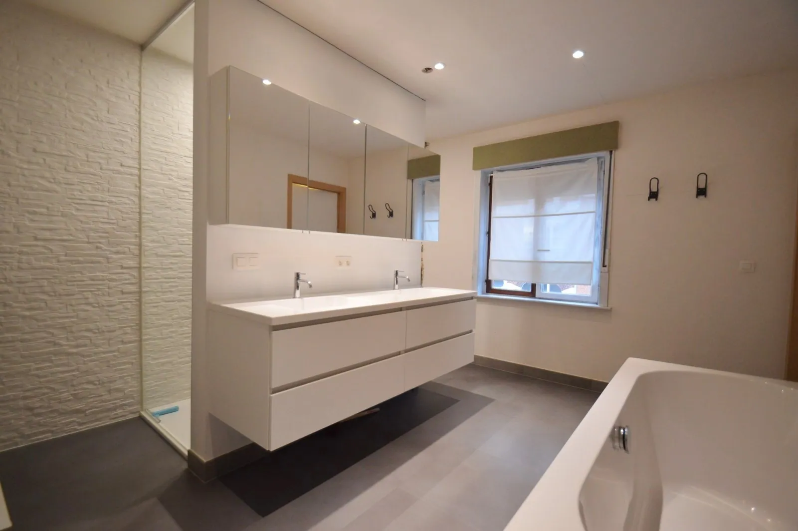 - Sublieme badkamer voorzien van ligbad, prachtige inloopdouche, dubbele wastafel en hangtoilet,