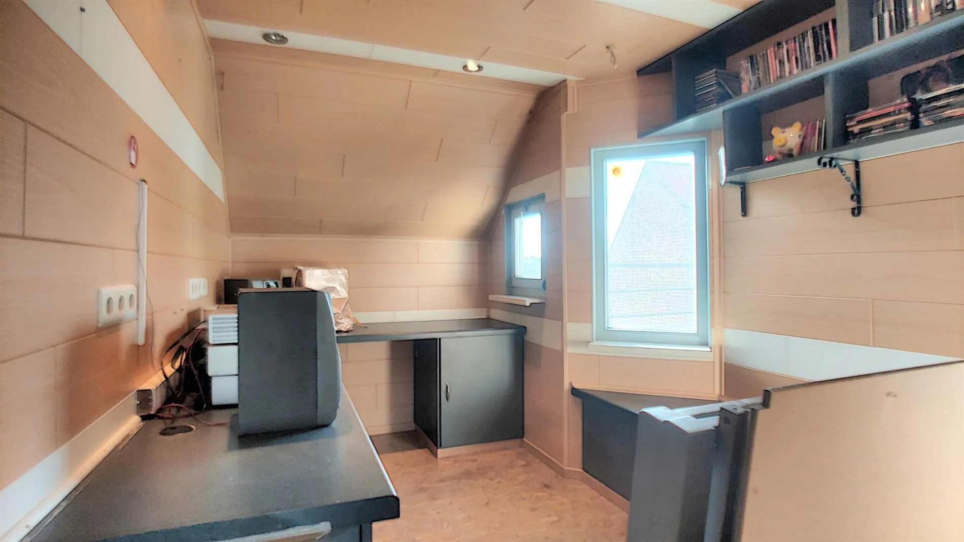 Vaste trap naar de twee verdieping waar zich nog een bureauruimte bevindt alsook een extra ruimte die kan dienen als derde slaapkamers. Mooi, groot zonneterras aanwezig.