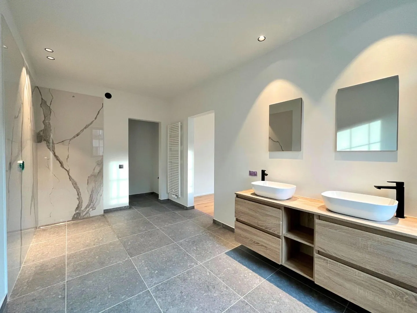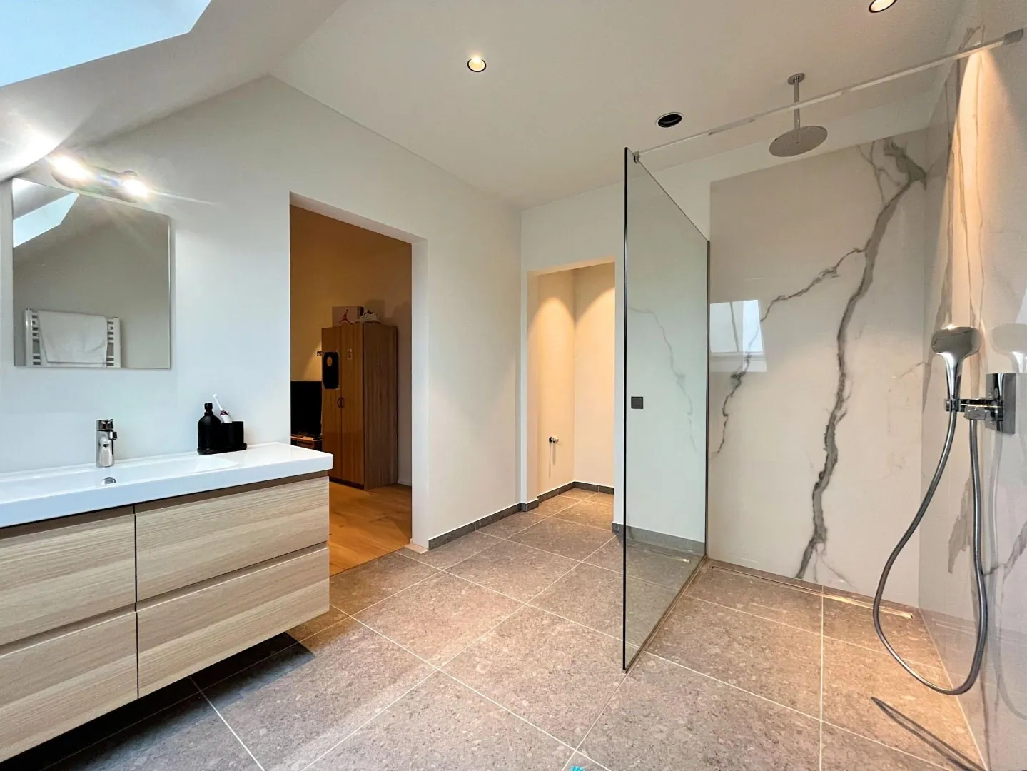- 2 zeer grote slaapkamer telkens voorzien van eigen badkamer, De grootste slaapkamer heeft ook een eigen ingebouwde dressing.