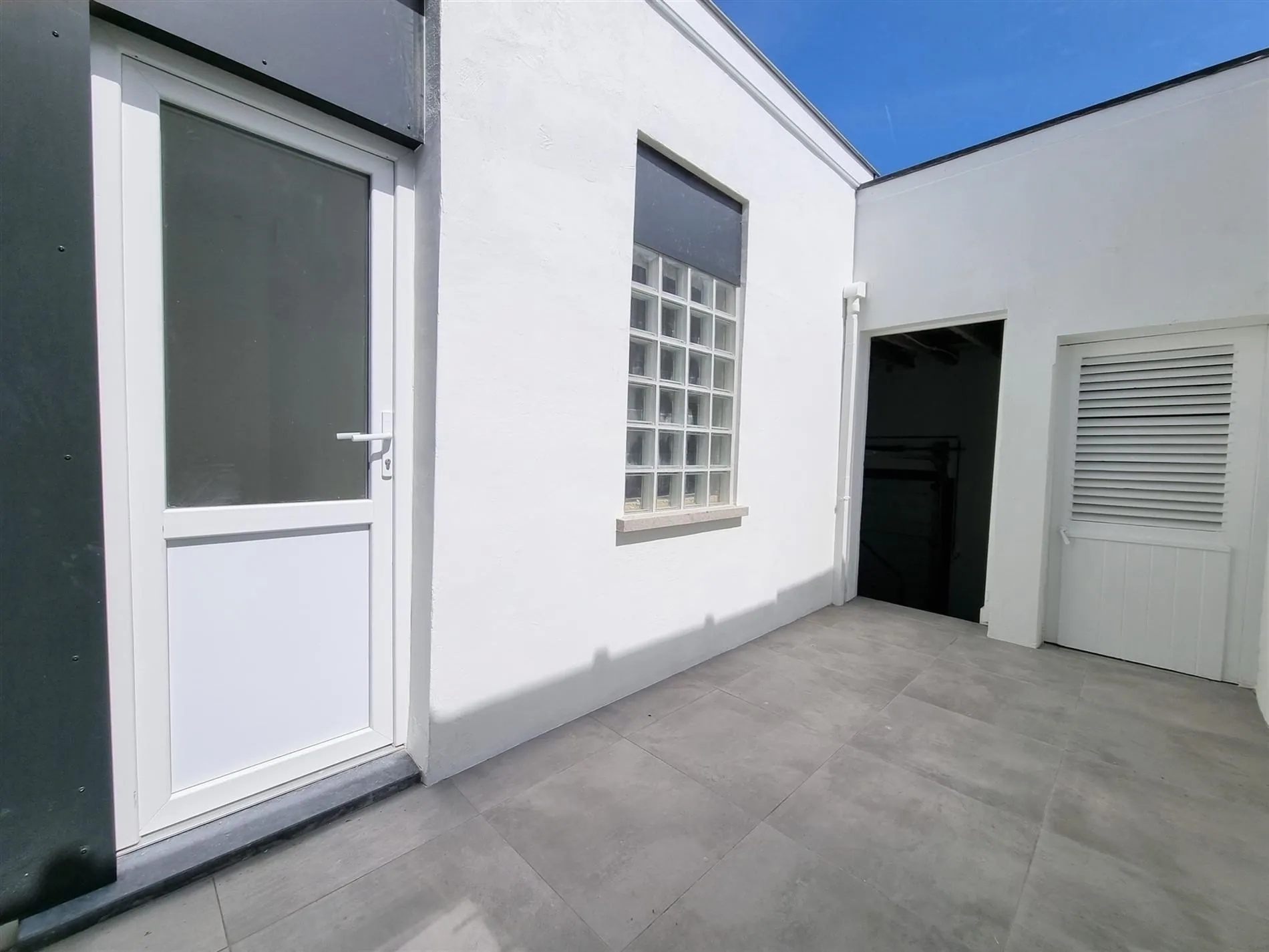 - Terras met doorgang naar de garagebox (+ standplaats).