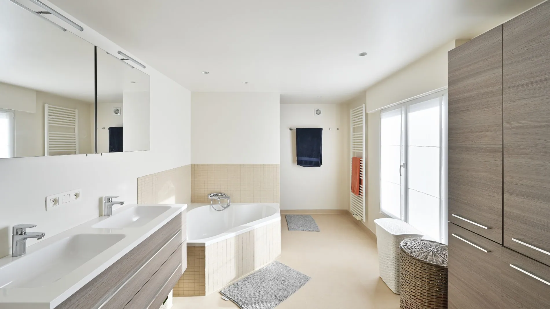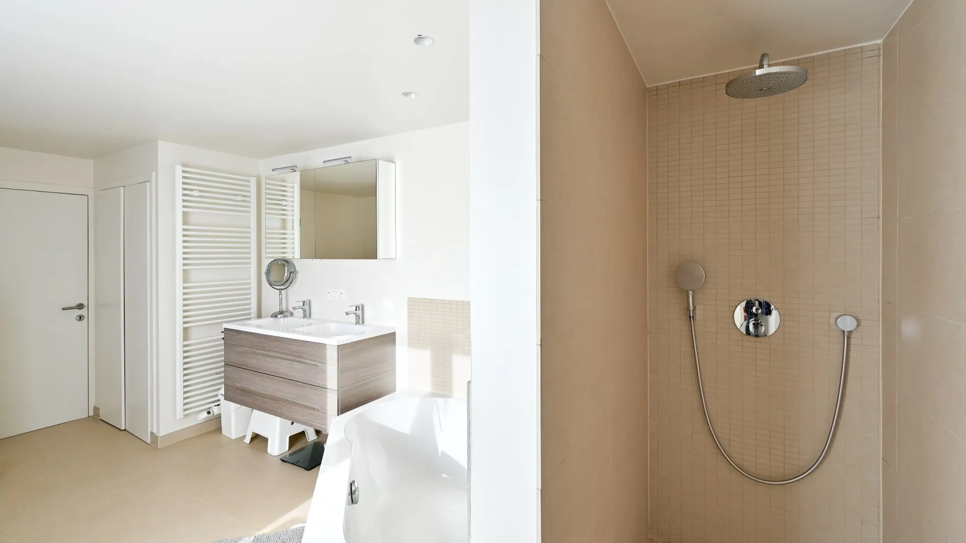 - Ruime badkamer voorzien van ligbad, douche, dubbele wastafel & toilet.
