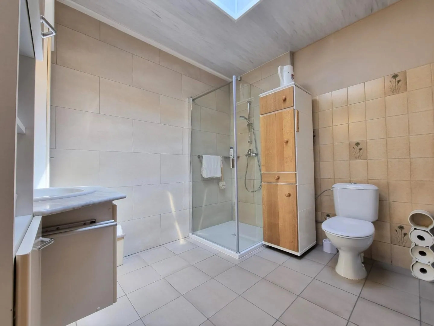 - Badkamer met nieuwe douche, wastafel & toilet,