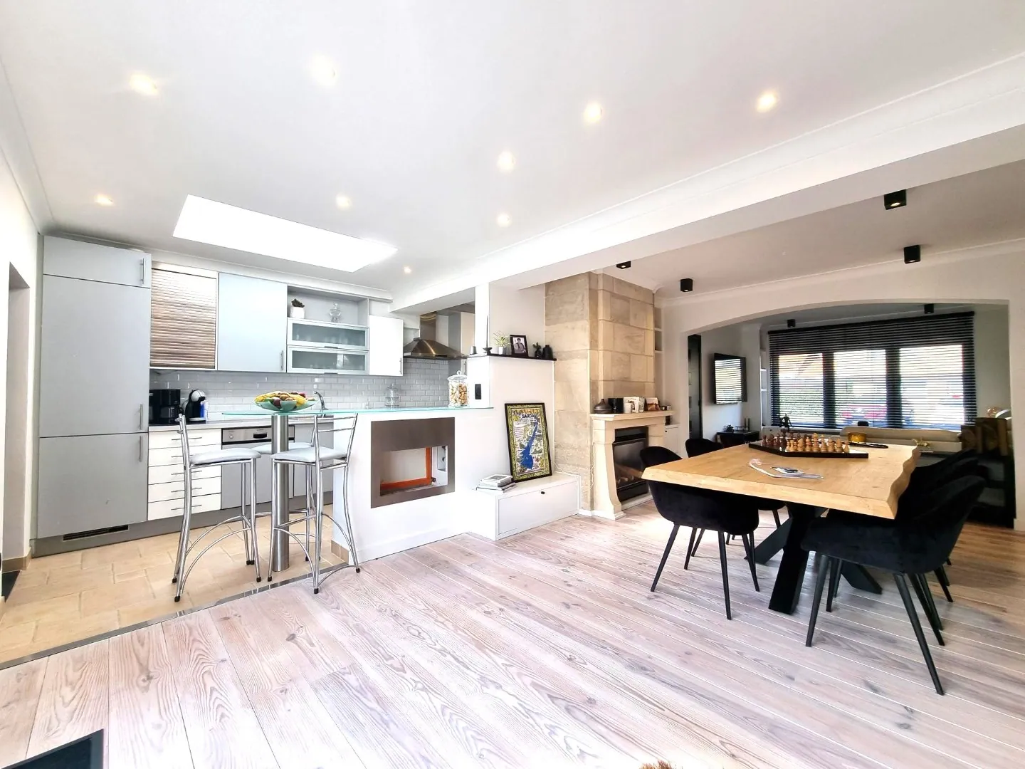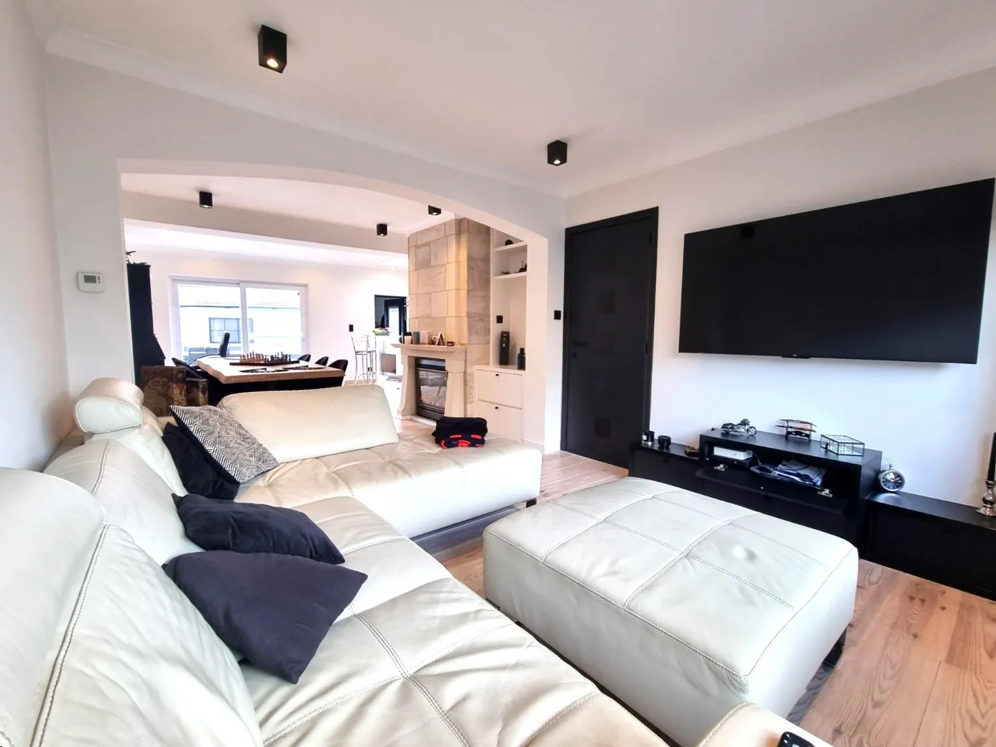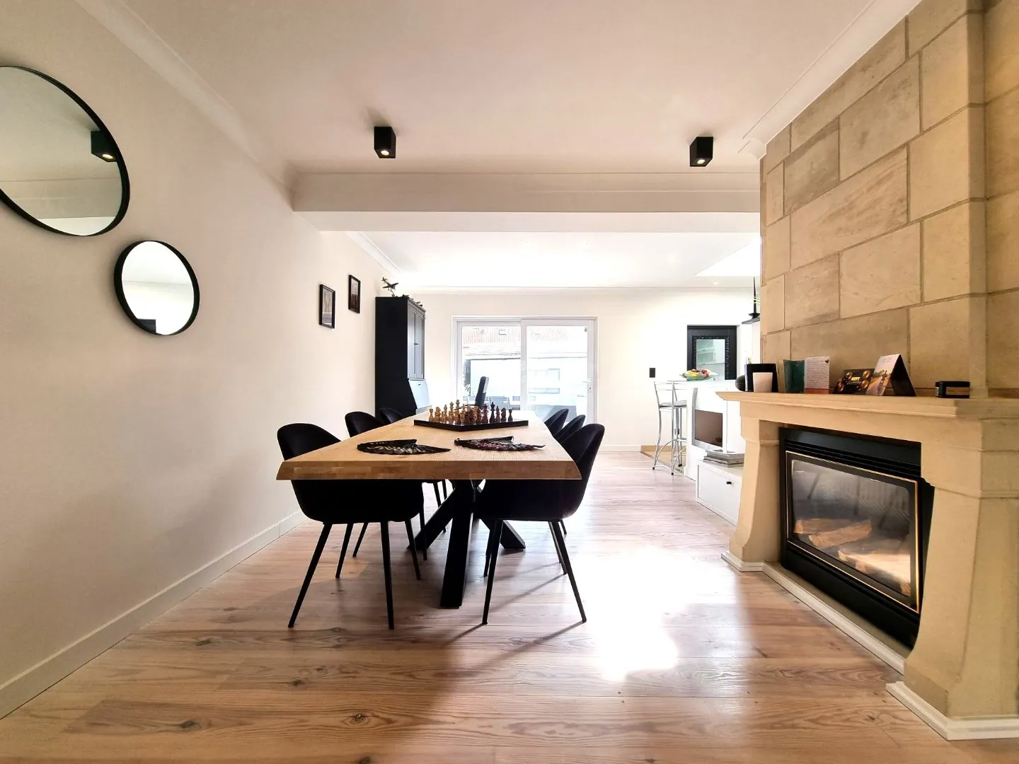 - Zeer lichtrijke leefruimte met zit -en eethoek in volle, mooie eiken parketvloer. Tevens gashaard aanwezig.