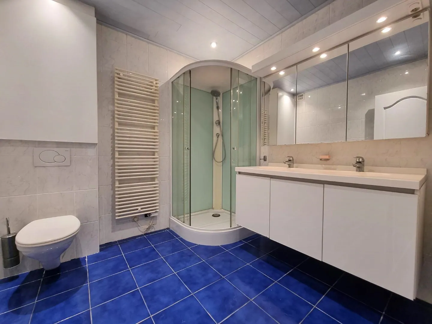 - Badkamer voorzien van douche, dubbele lavabo & toilet,