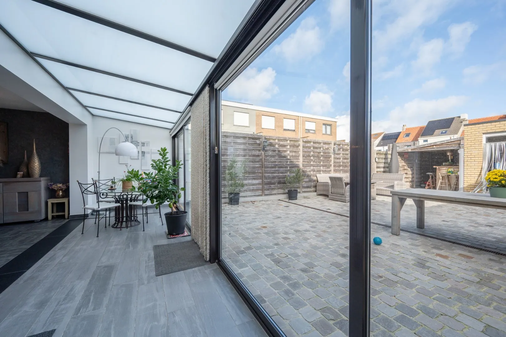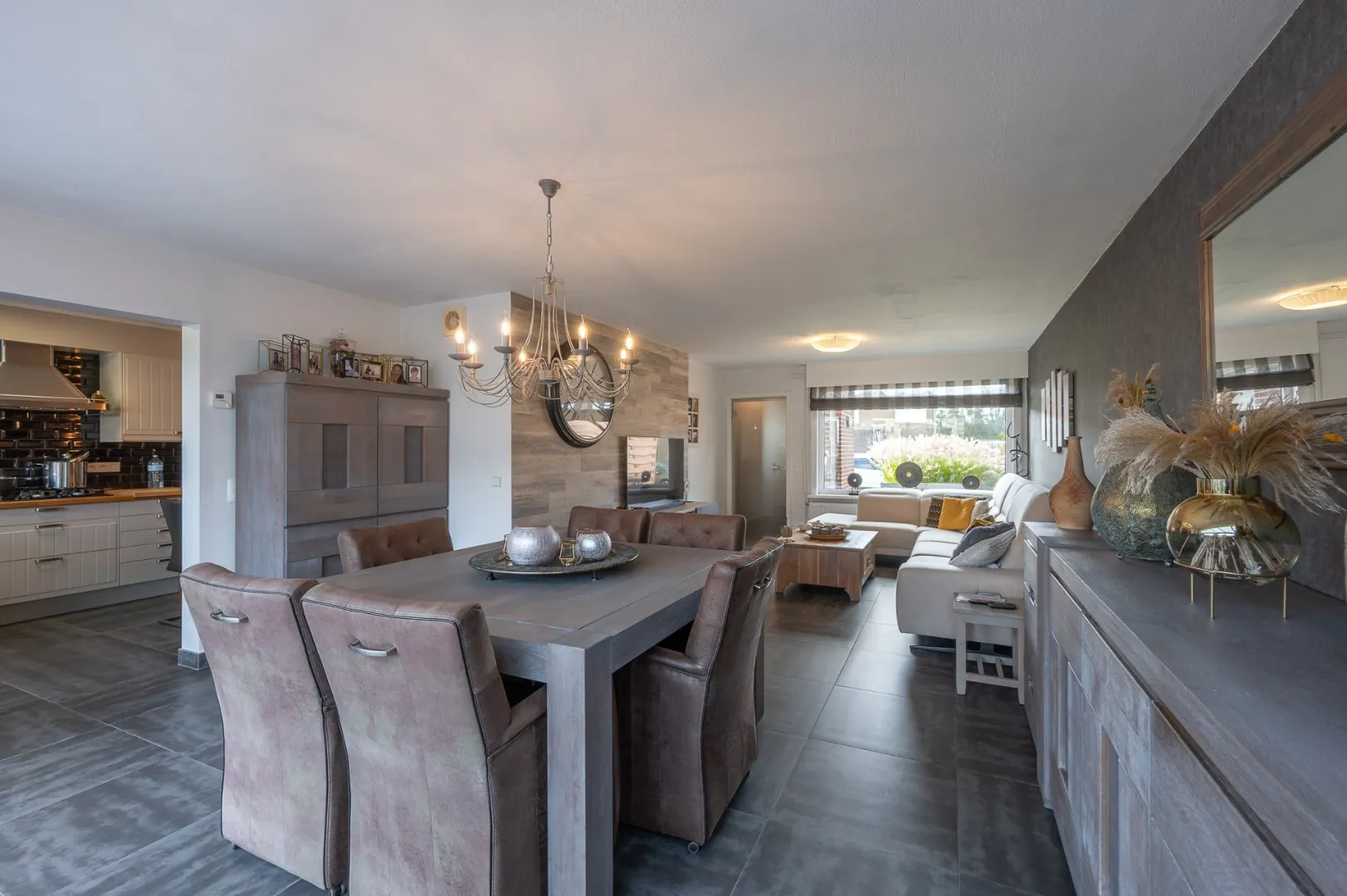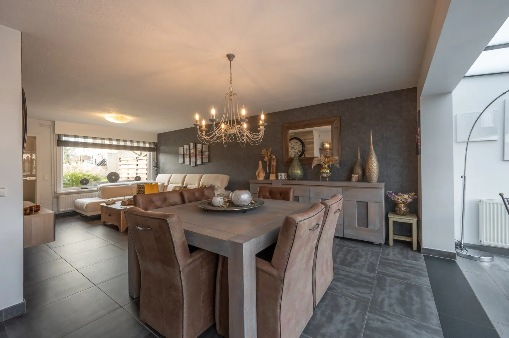 - Aangename, ruime living voorzien van zit -en eethoek met uitbouw,