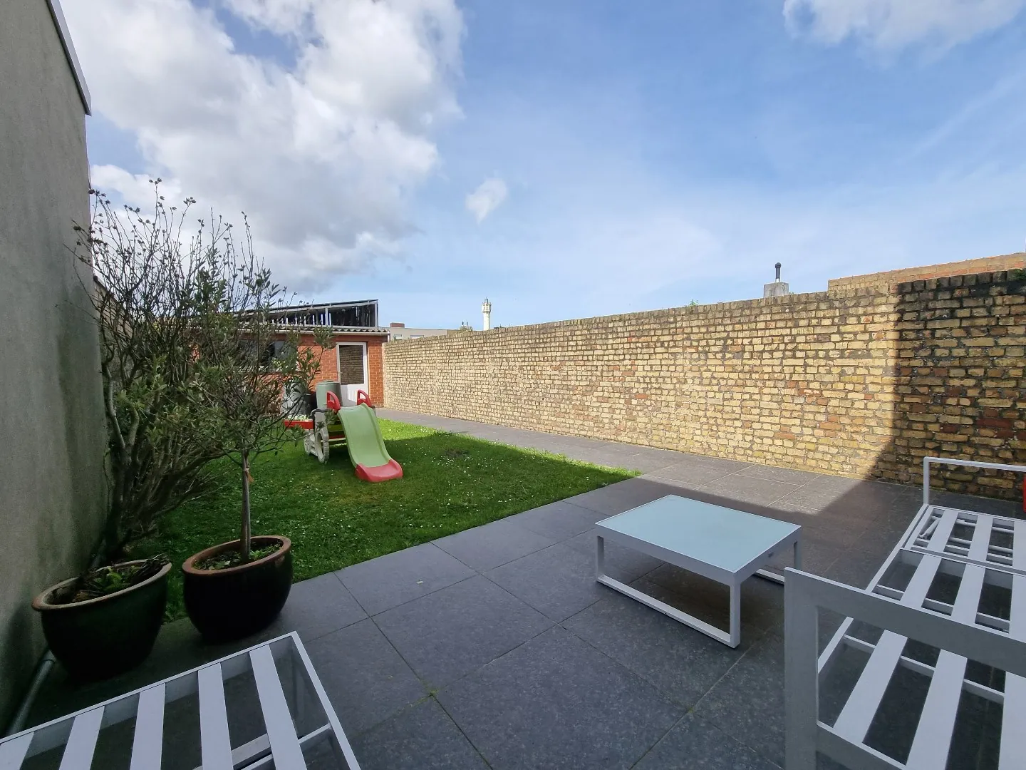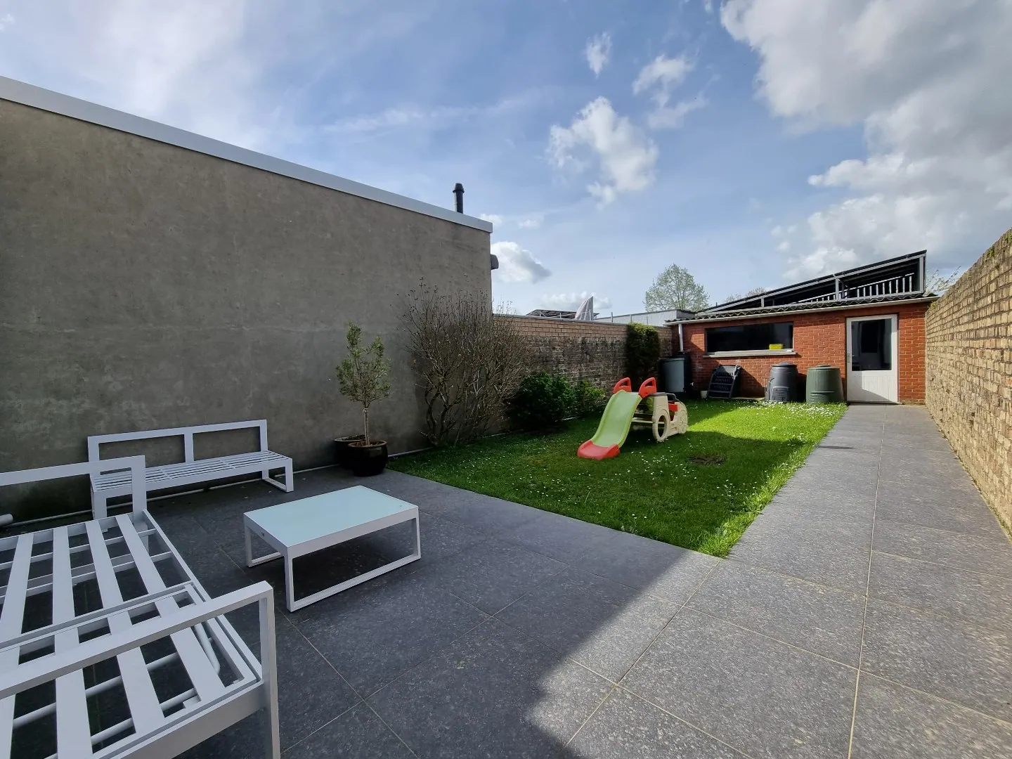 - Tuin en nieuw aangelegd terras,