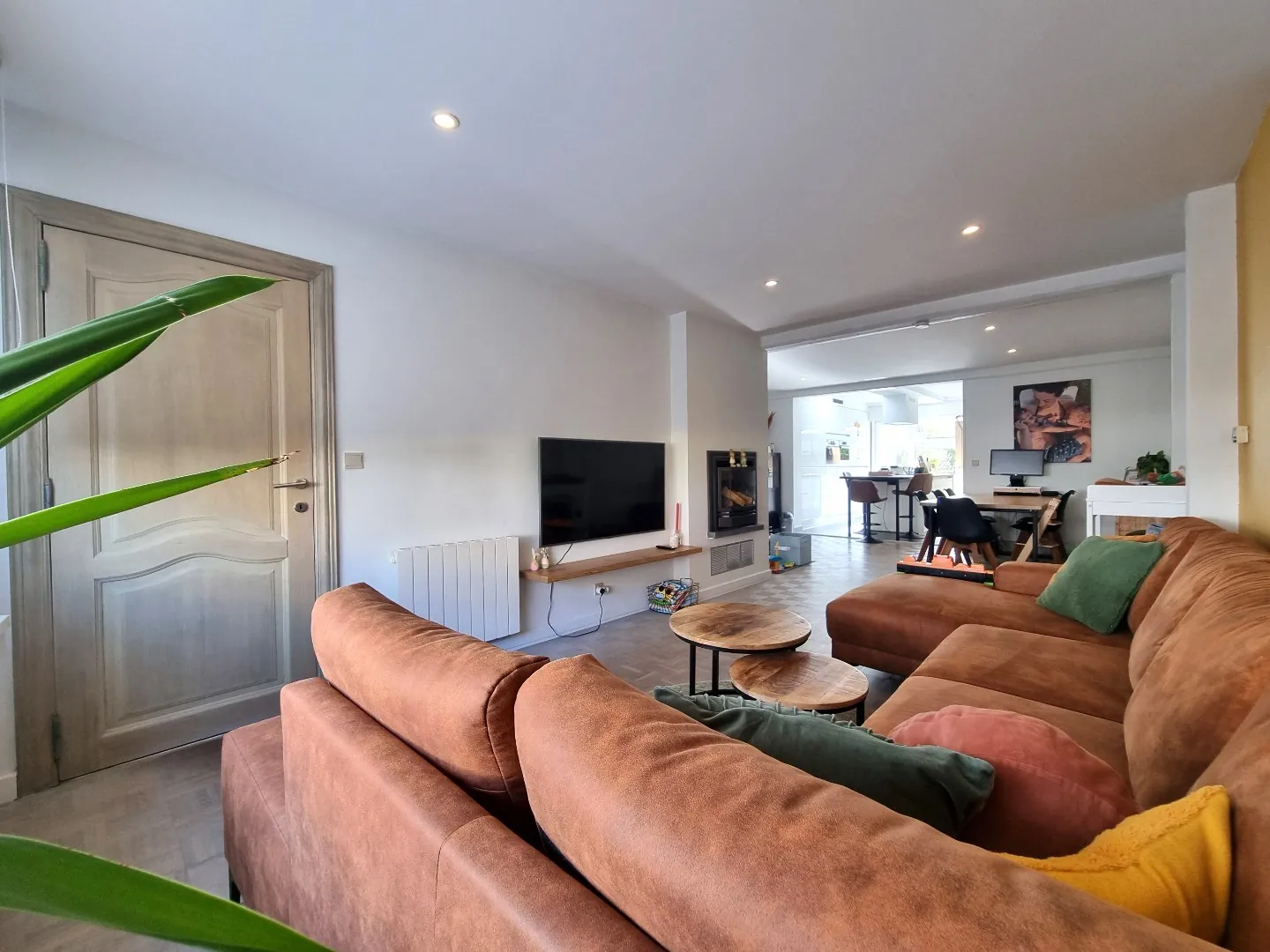 - Zeer lichtrijke leefruimte met zit -en eethoek,