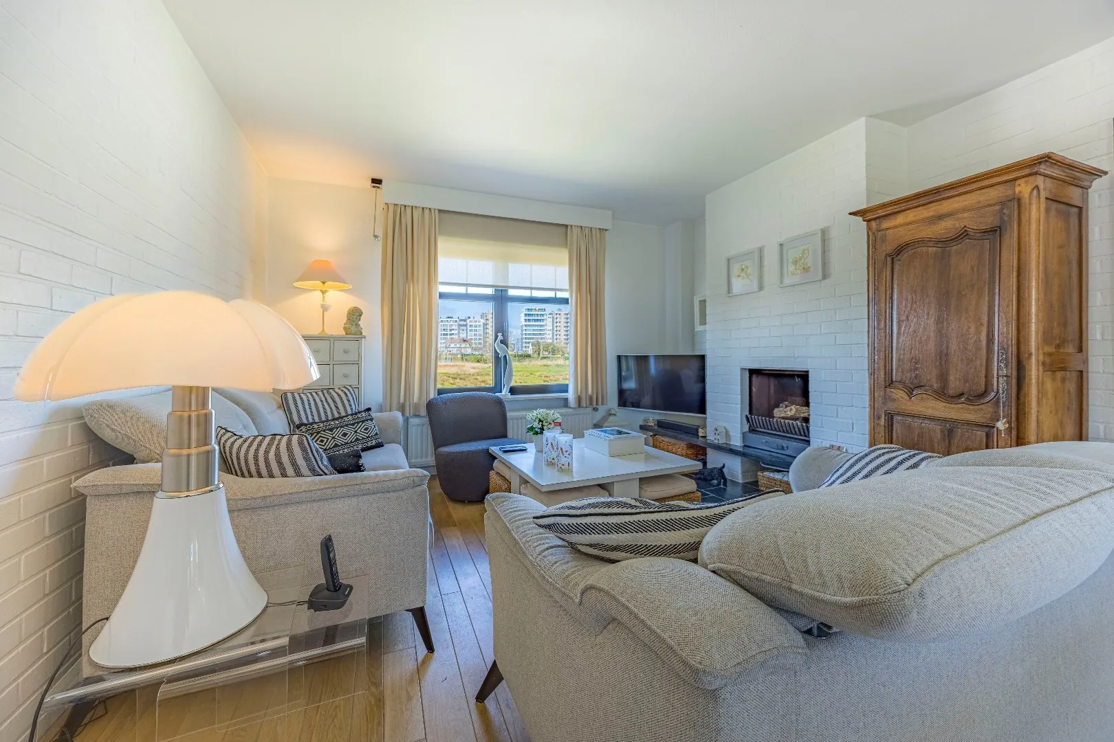 - Enorm lichtrijke leefruimte door het lichtinval van twee zijden. Aan de voorzijde magnifiek uitzicht over de Vuurtoren en de weiden rondom. Aan de achterzijde tevens leuk uitzicht over de tuin,