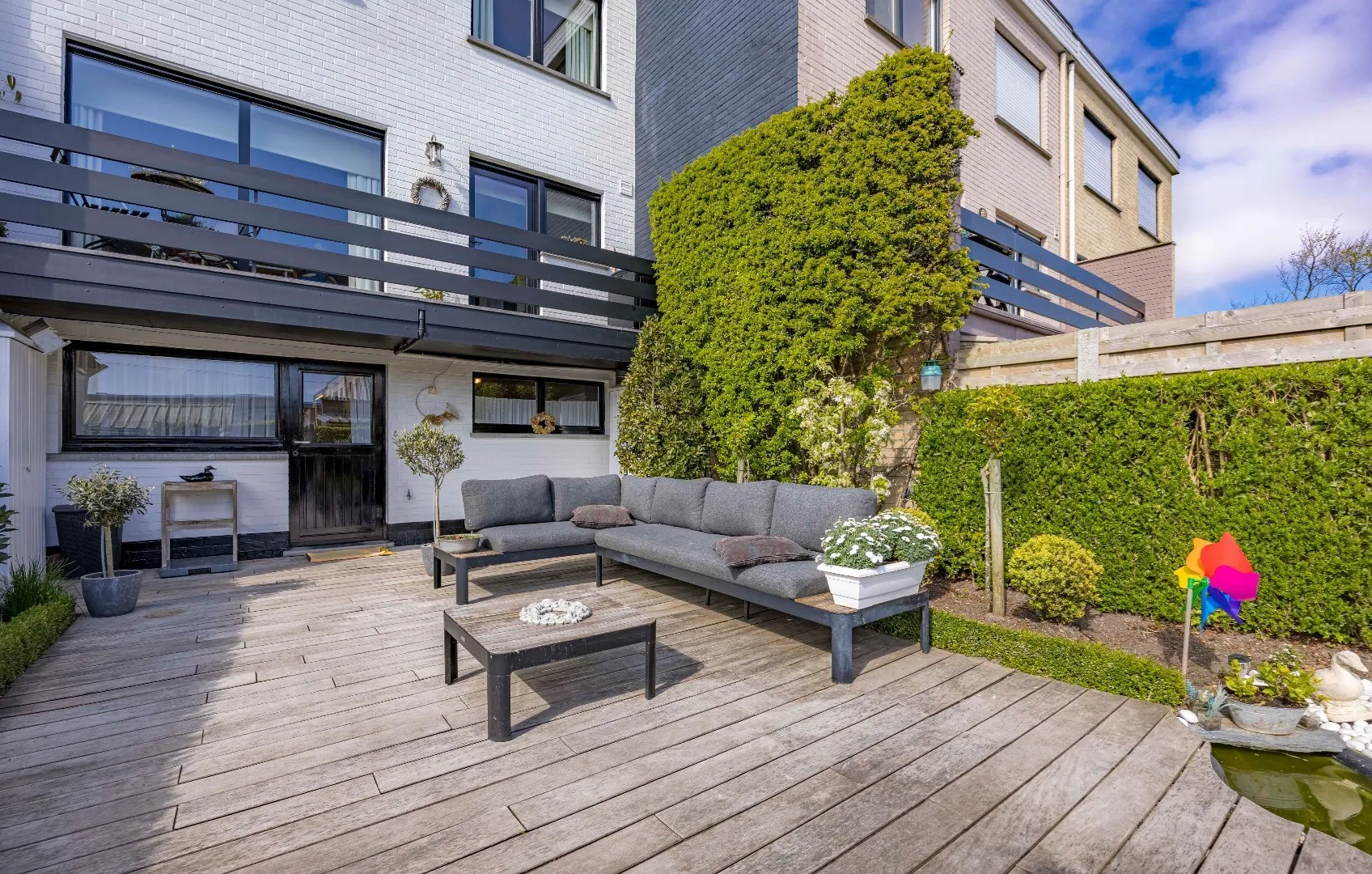 - Fraai aangelegde, zuidgerichte tuin met terras en vijvertje.