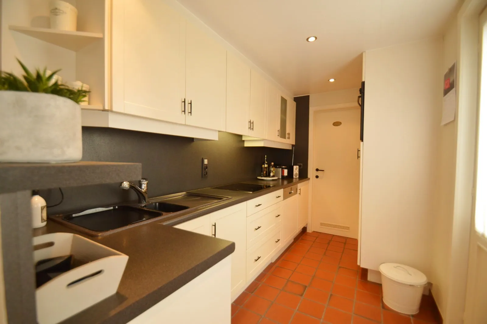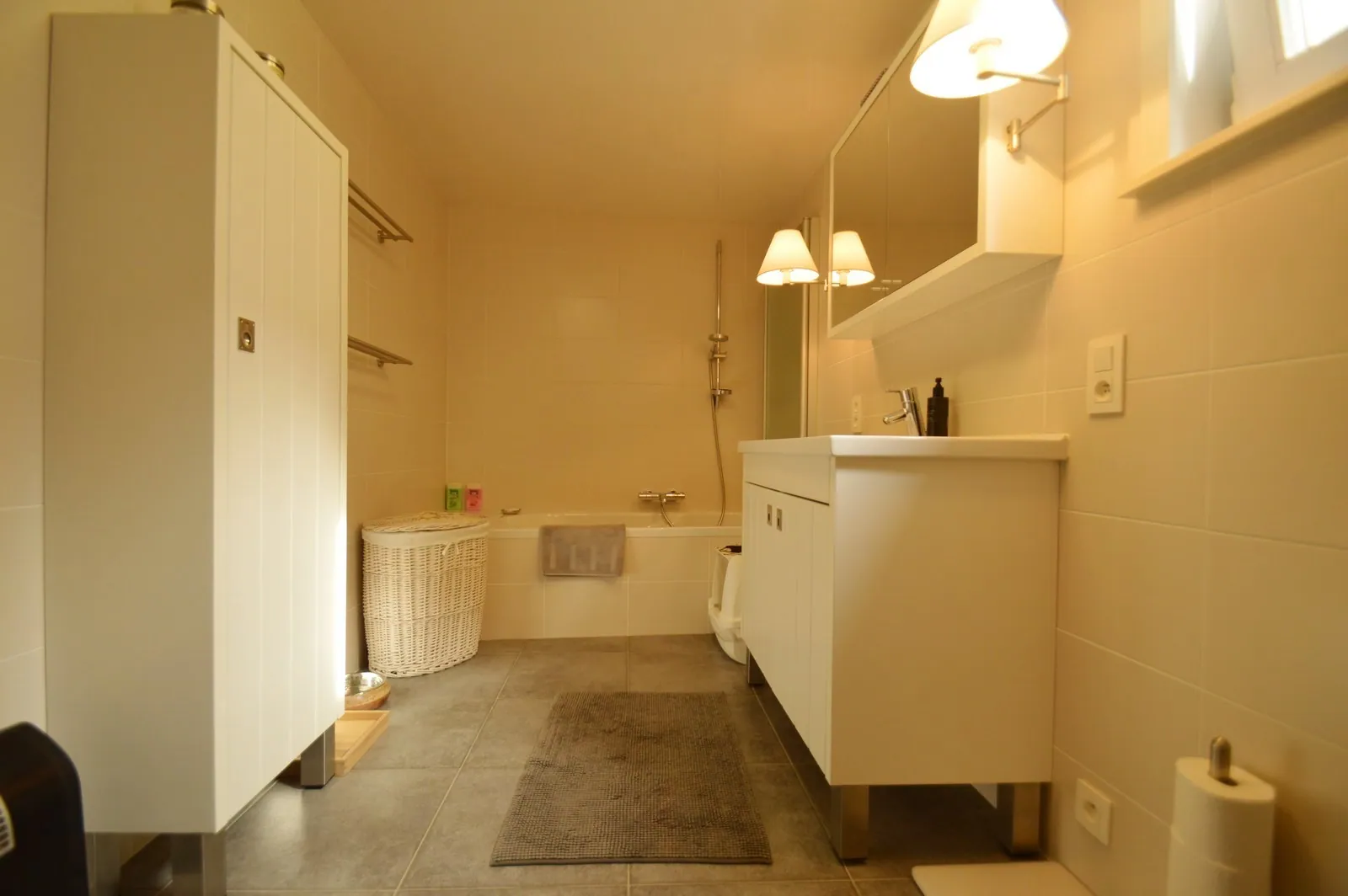 - Recente badkamer met ligbad en douchescherm, wastafel & toilet,