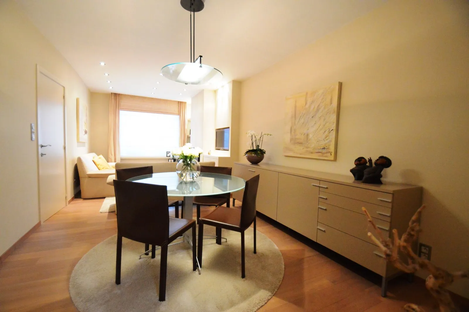 - Leuke leefruimte met zithoek voorzien van ingemaakt tv-meubel en gashaard