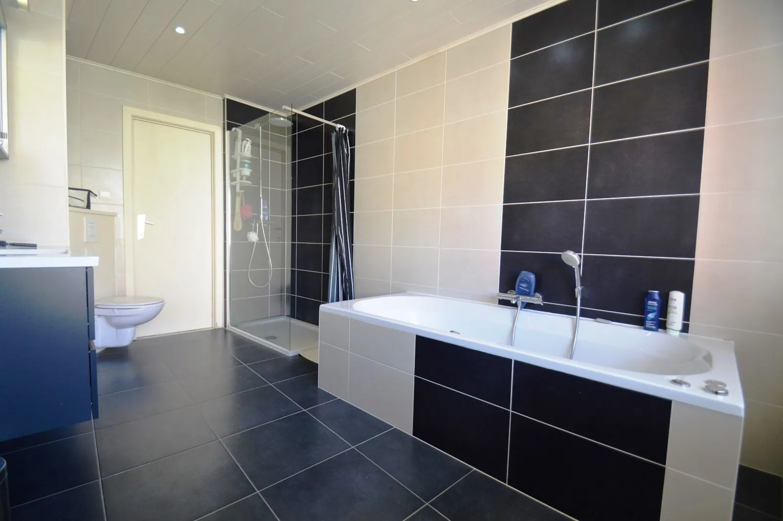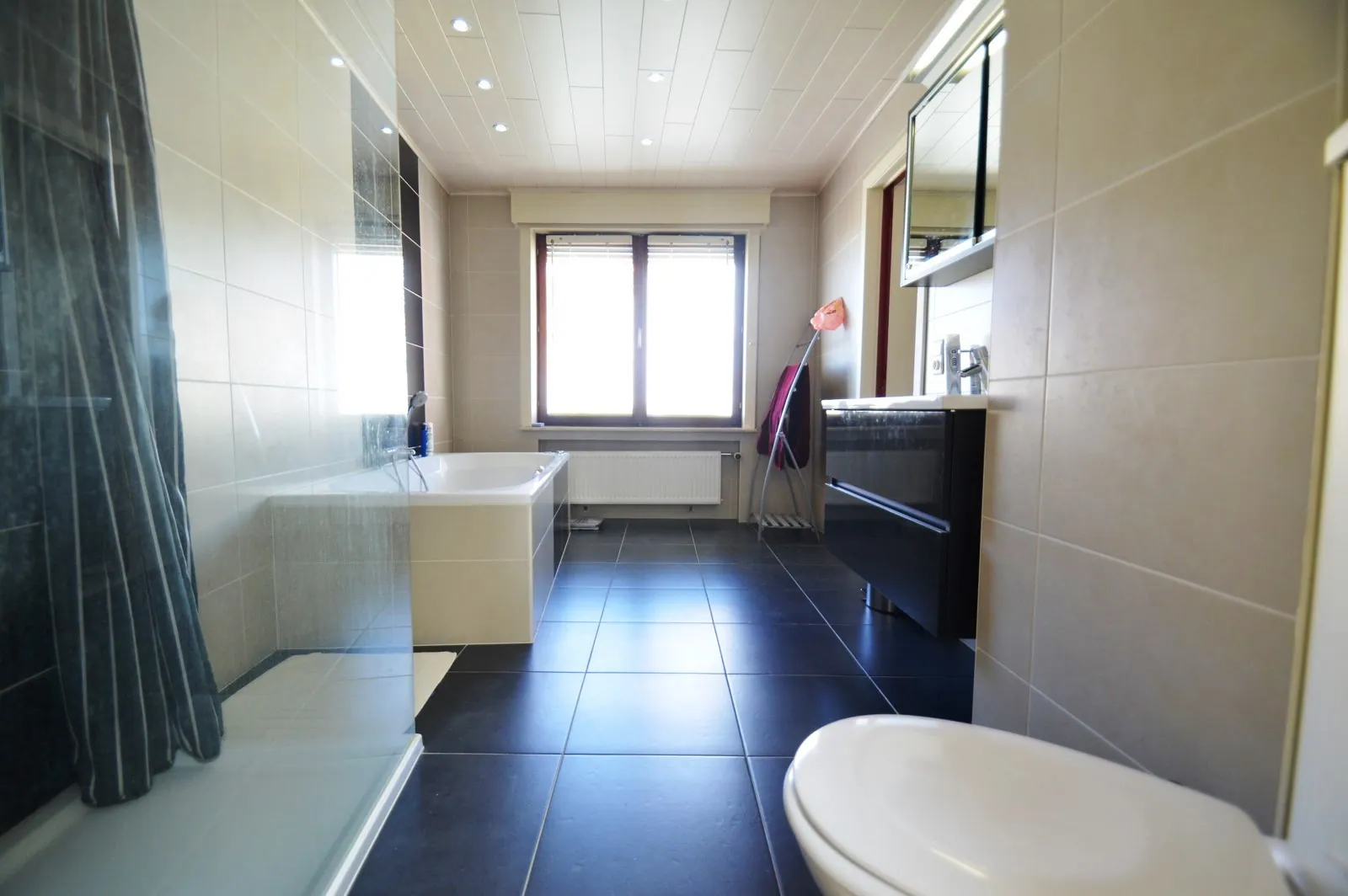 2de verdieping: 3 grote slaapkamers waarvan de masterbedroom die rechtstreeks toegang geeft tot de prachtige badkamer voorzien van ligbad met massagejets, inloopdouche, wastafel & toilet.