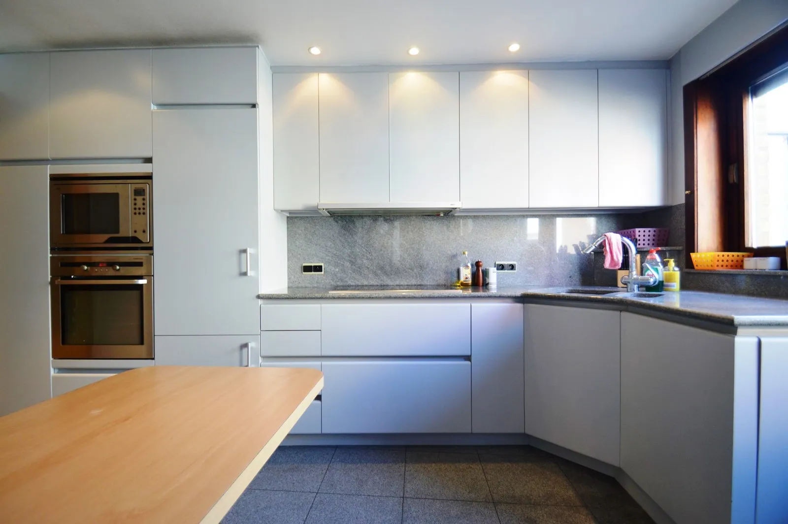 1ste verdieping: spacieuze leefruimte met grote zit- en eethoek in L-vorm, volledig ingerichte keuken, toegang tot het zongericht terras waar U van 's middags tot 's avond van de zon kan genieten.