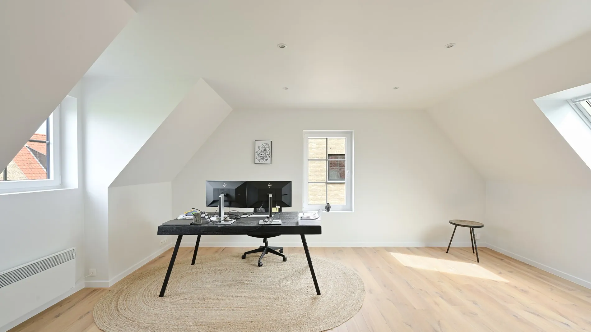 - Ruime slaapkamer, momenteel ingedeeld als bureauruimte.