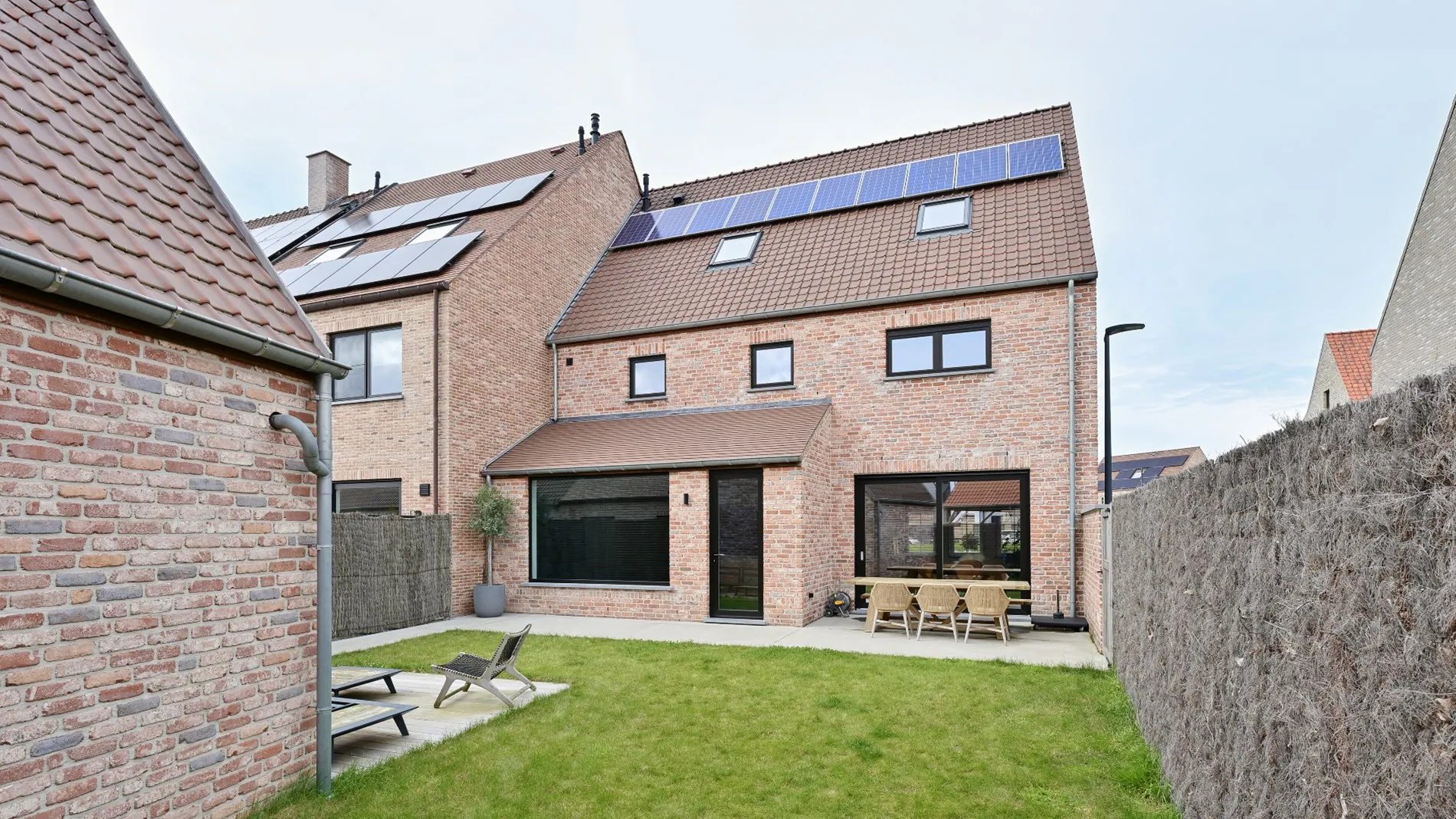 Vervaardigd uit hoogwaardige materialen, afgewerkt met parketvloeren tot op de hoogste verdieping. Grote open ruimtes, veel natuurlijke lichtinval dankzij de grote raampartijen, ruime maar onderhoudsvriendelijke zuidgerichte tuin, met als extra troef tien zonnepanelen.