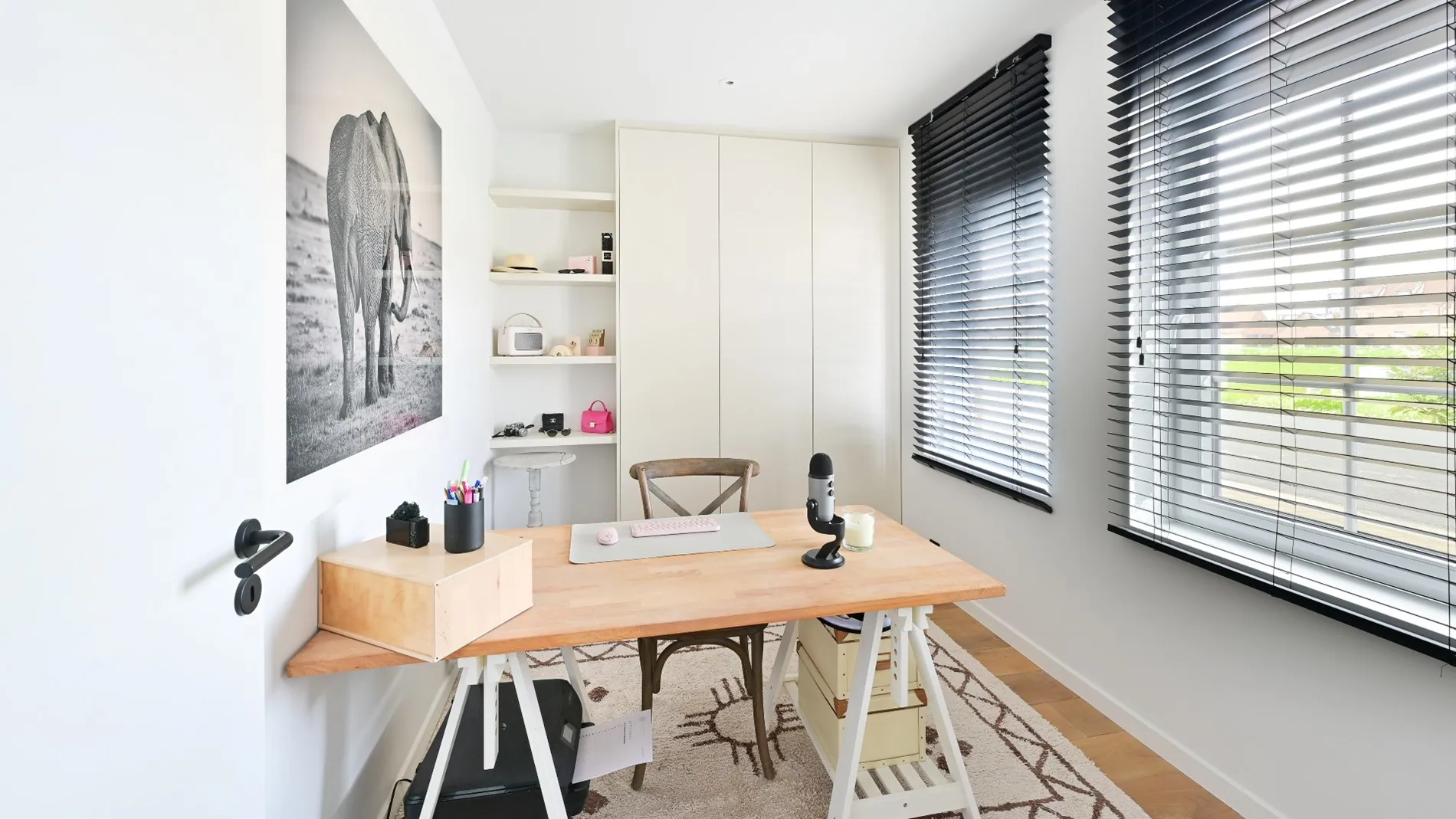 - Bureauruimte met ingemaakte kasten.