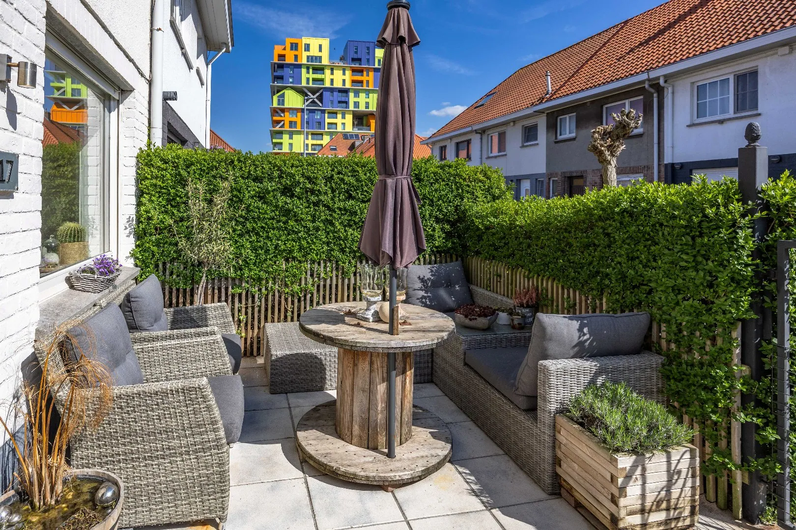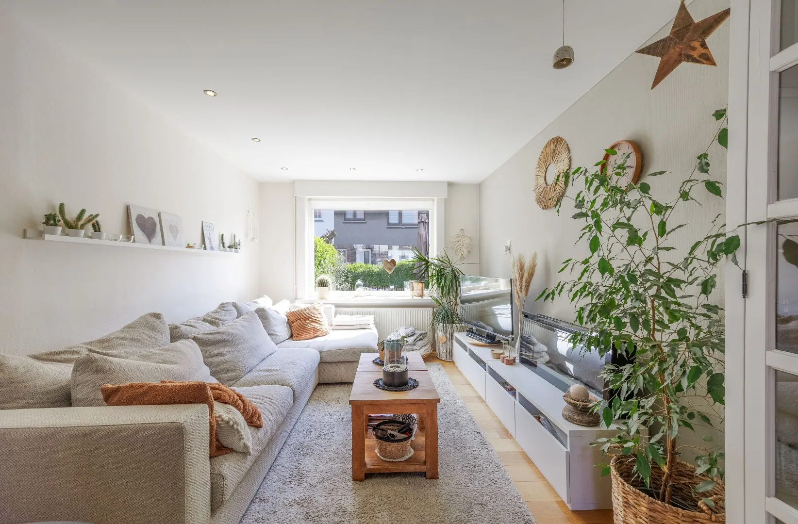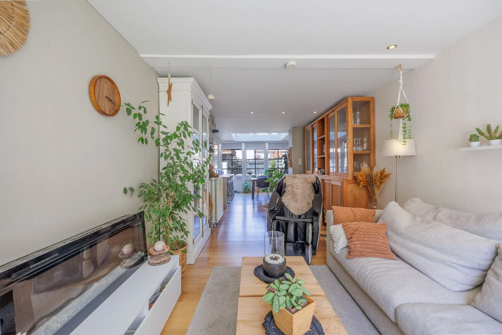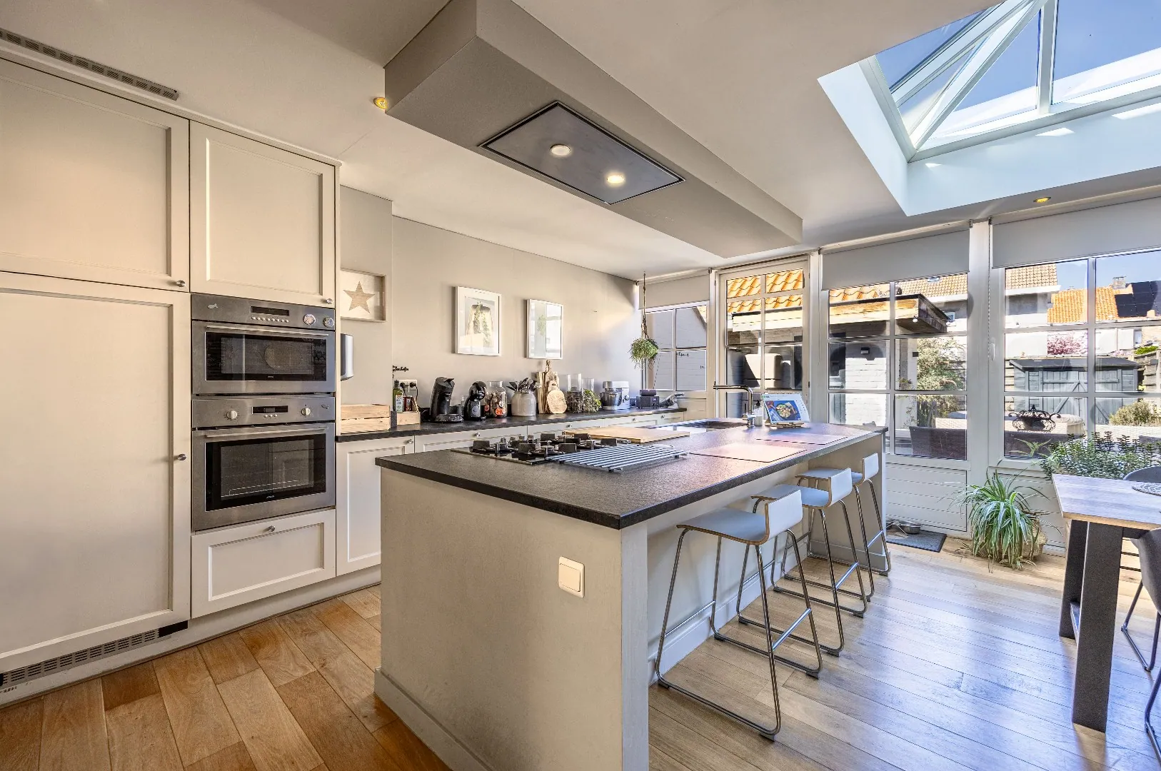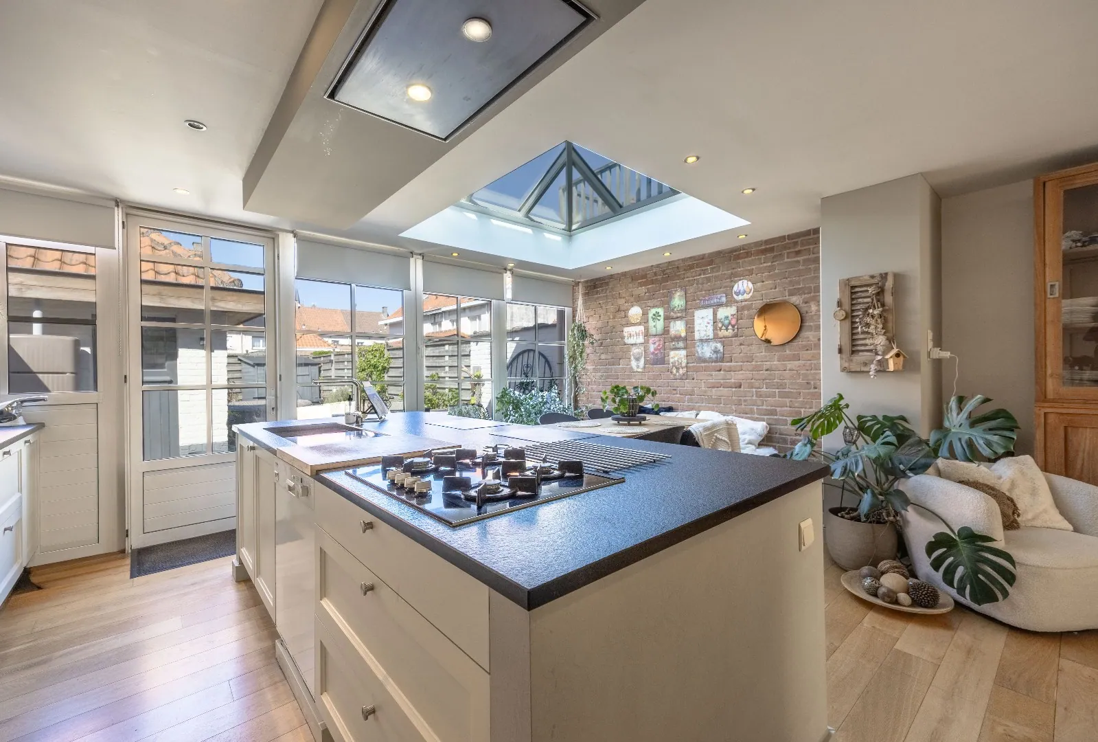 De woning werd smaakvol ingericht en beschikt over een mooie balans tussen functionaliteit en gezelligheid. De leefruimte sluit naadloos op de luxueuze volledig ingerichte leefkeuken aan en biedt een open, uitnodigende omgeving voor het hele gezin.
