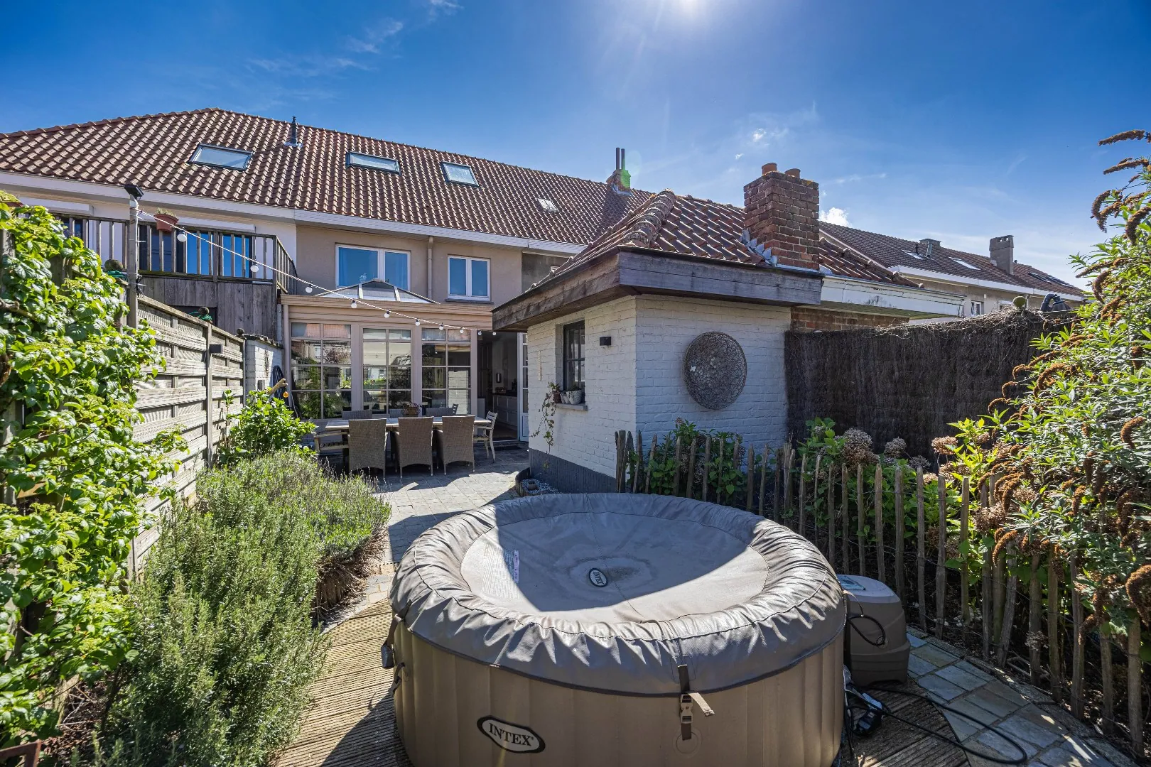 - Gezellig, mooi aangelegd terras met tuinhuis,