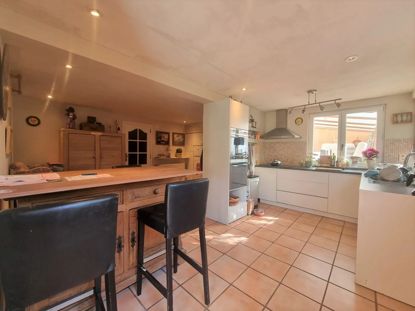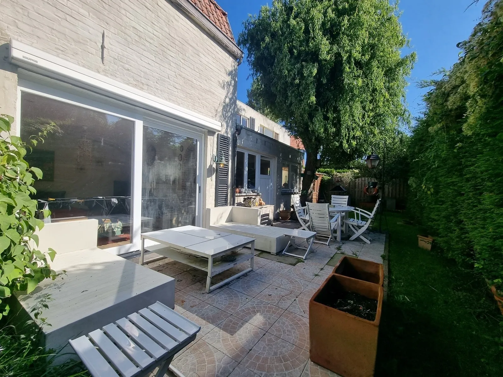 - Lichtrijke leefruimte met zicht en rechtstreekse toegang naar het terras en de tuin,