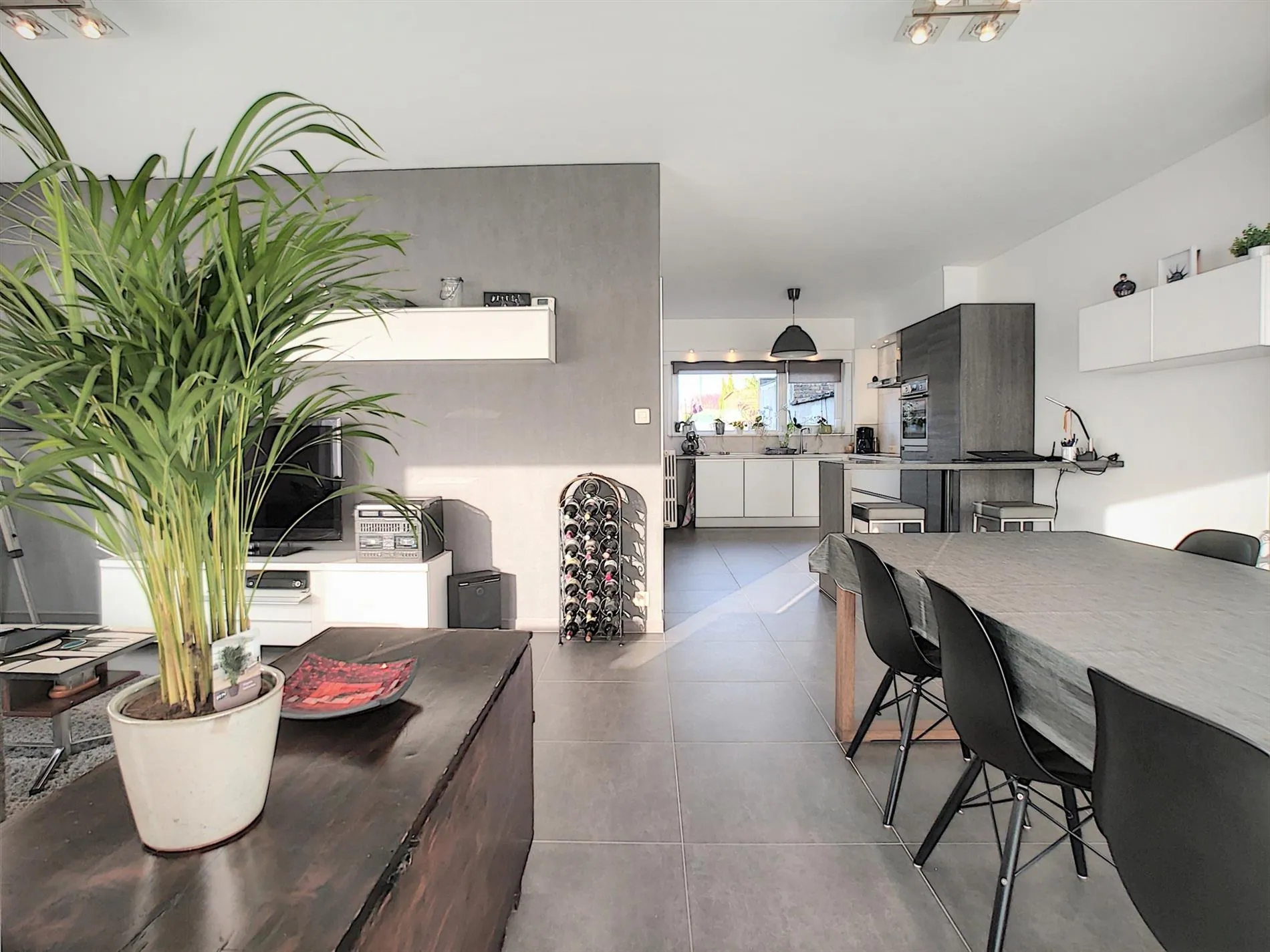 - Zeer lichtrijke leefruimte met zit- en eethoek,