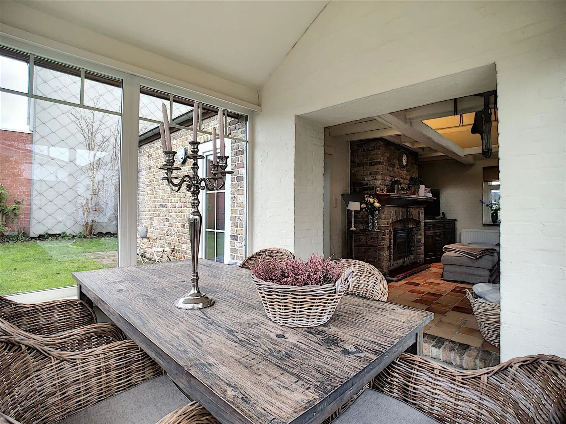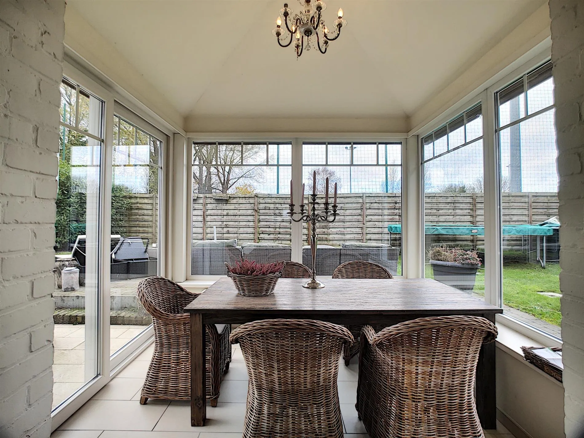 - Veranda met zicht op de tuin en dienstdoend als eetkamer,